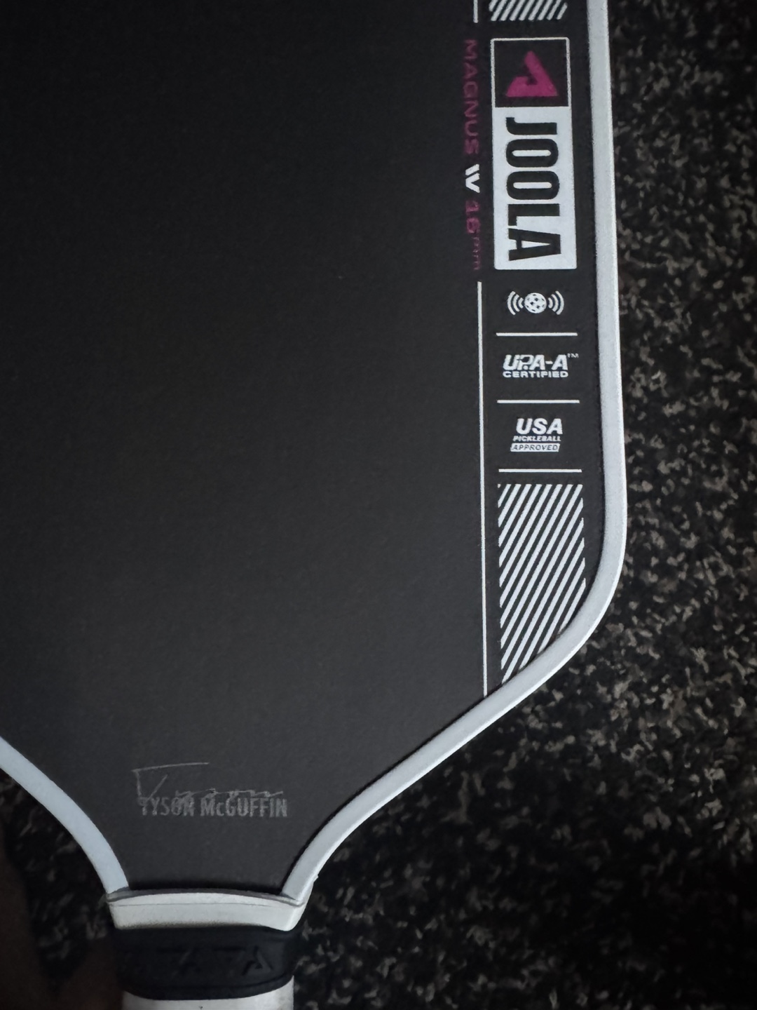 The JOOLA Tyson McGuffin Magnus Pro IV 16mm pickleball paddle is UPA-A pro Certified and USAP PBCoR .43 Certified