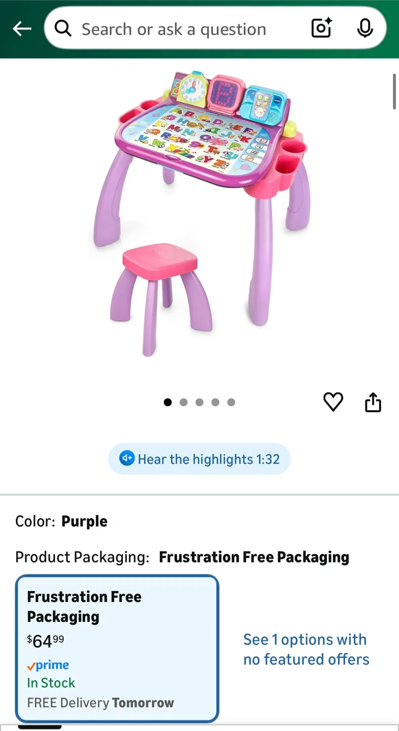 The desk helps kids to learn time, letters, numbers, animals and more through interactive activities. It also comes with expansion packs, and a stool! $65 on Amazon.