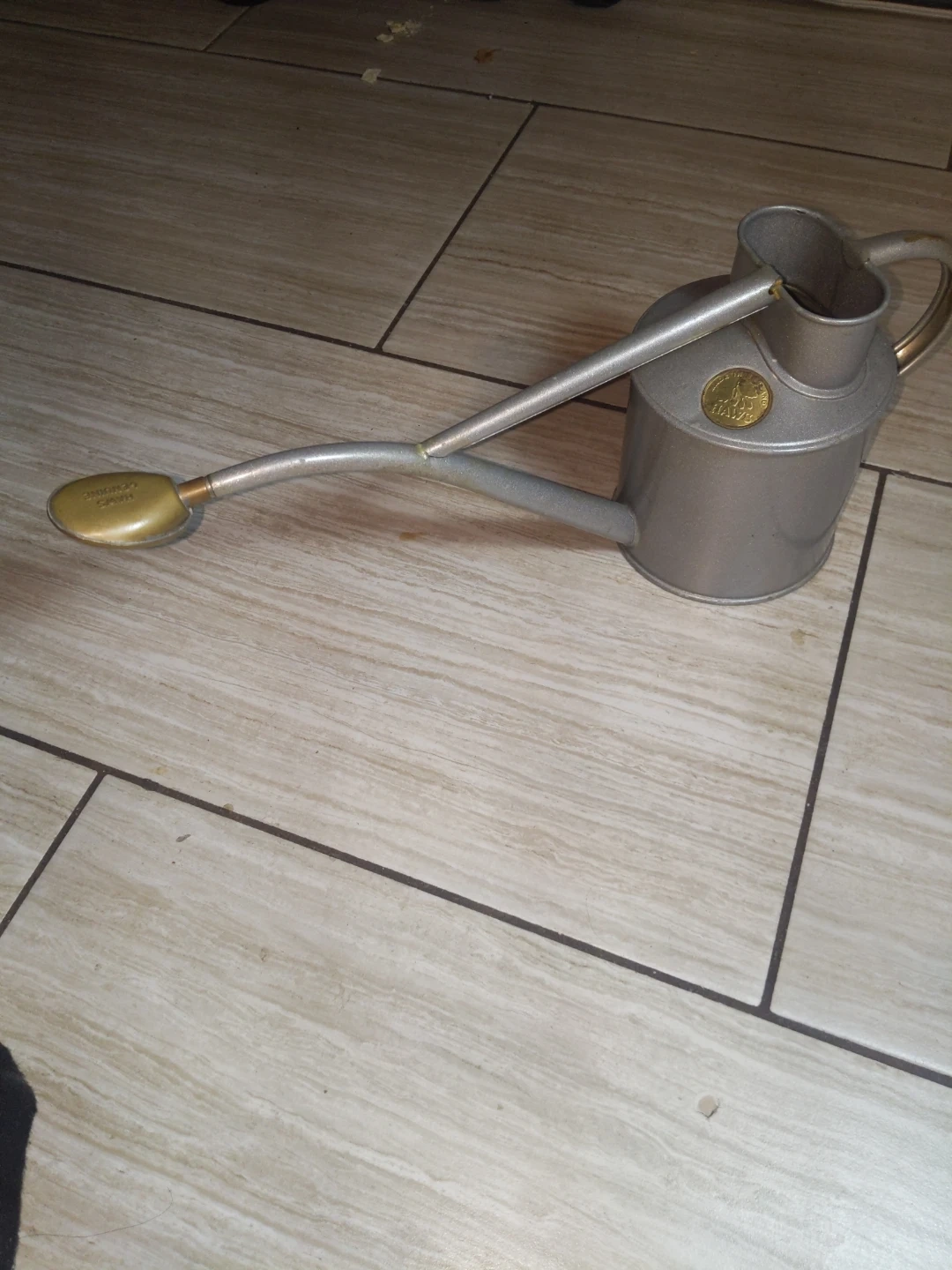 Selling a Haws watering can in silver. It's in good condition and ready to help with your gardening needs!