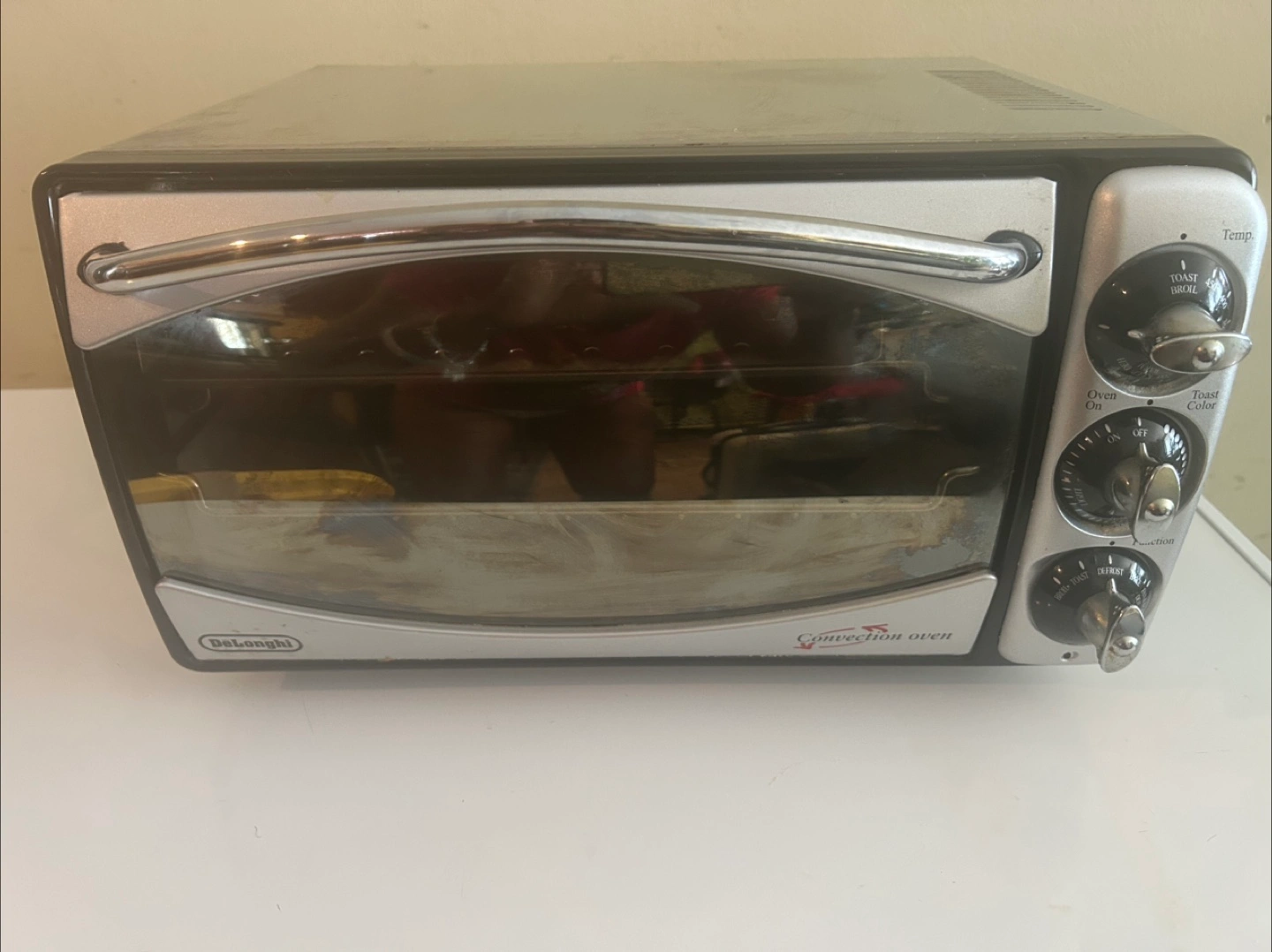 Selling a DeLonghi convection oven. It has settings for toast, broil, oven, and defrost. It also has a temperature setting.