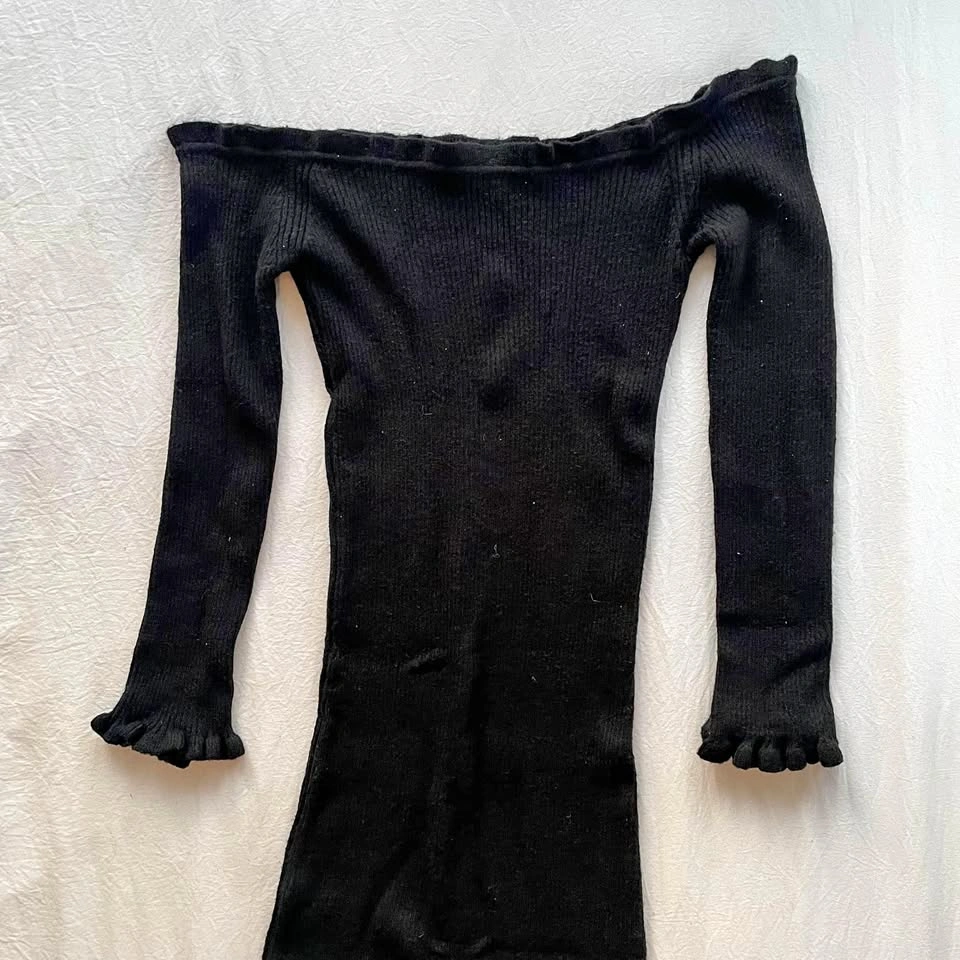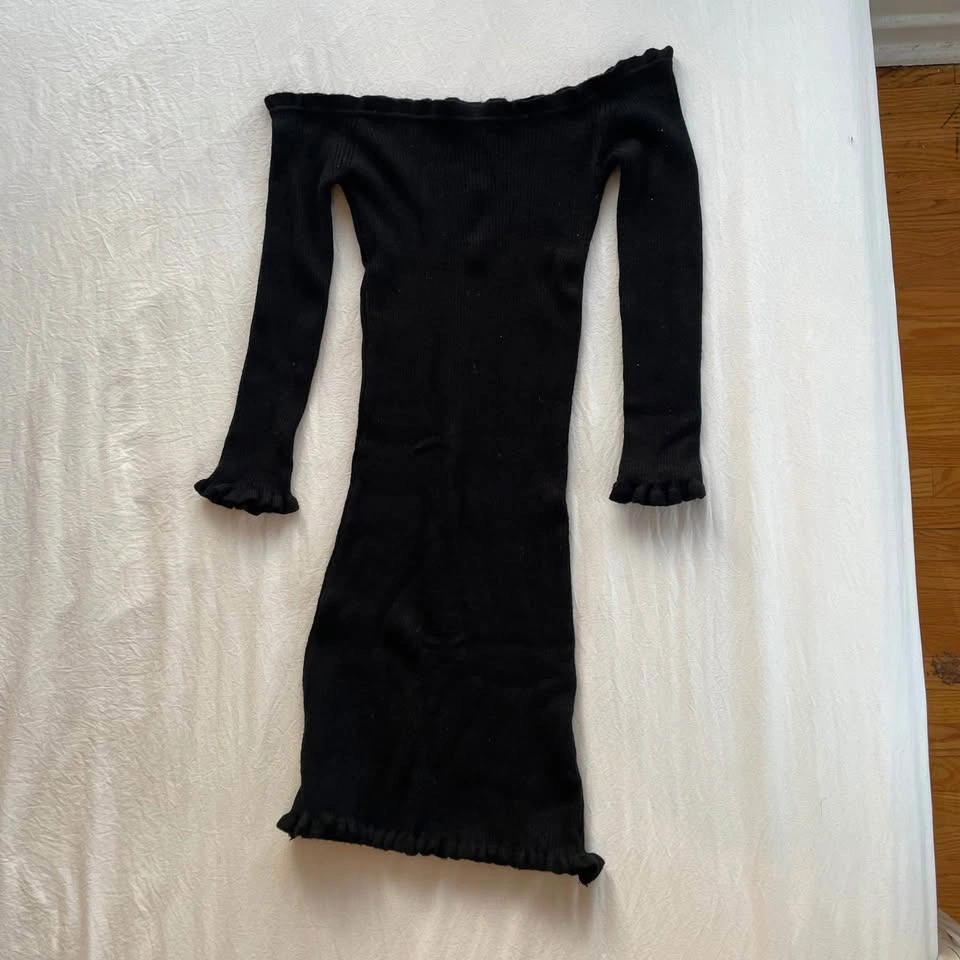Black Ribbed, Off the Shoulder Knit Dress (One Size, fits most)