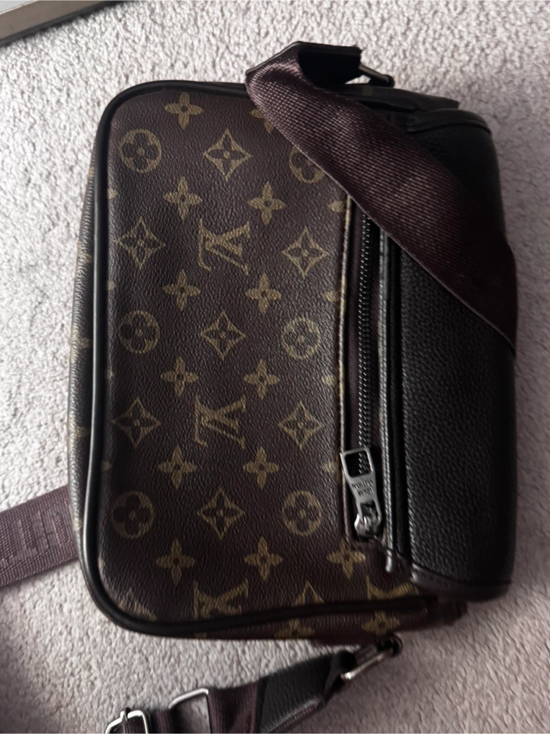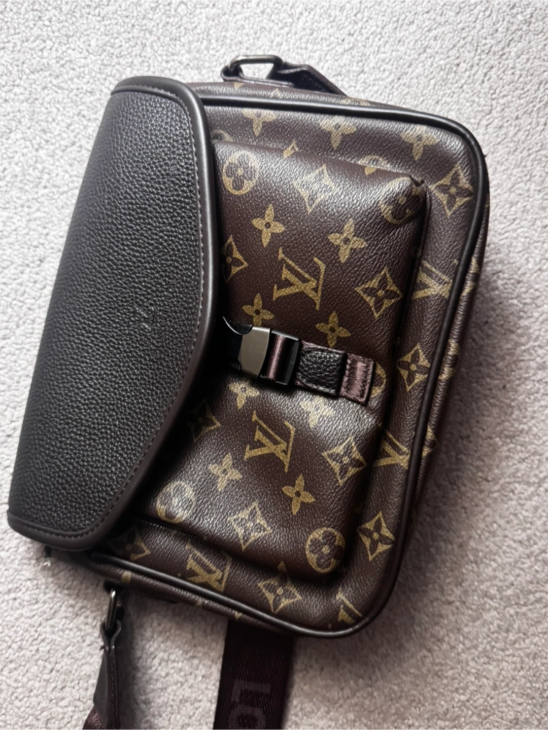 Selling a Louis Vuitton Avenue Sling Bag. It's in great condition and features the classic LV monogram pattern on brown leather. The bag has a sleek design with black leather accents and a comfortable shoulder strap. Perfect for carrying essentials in style!