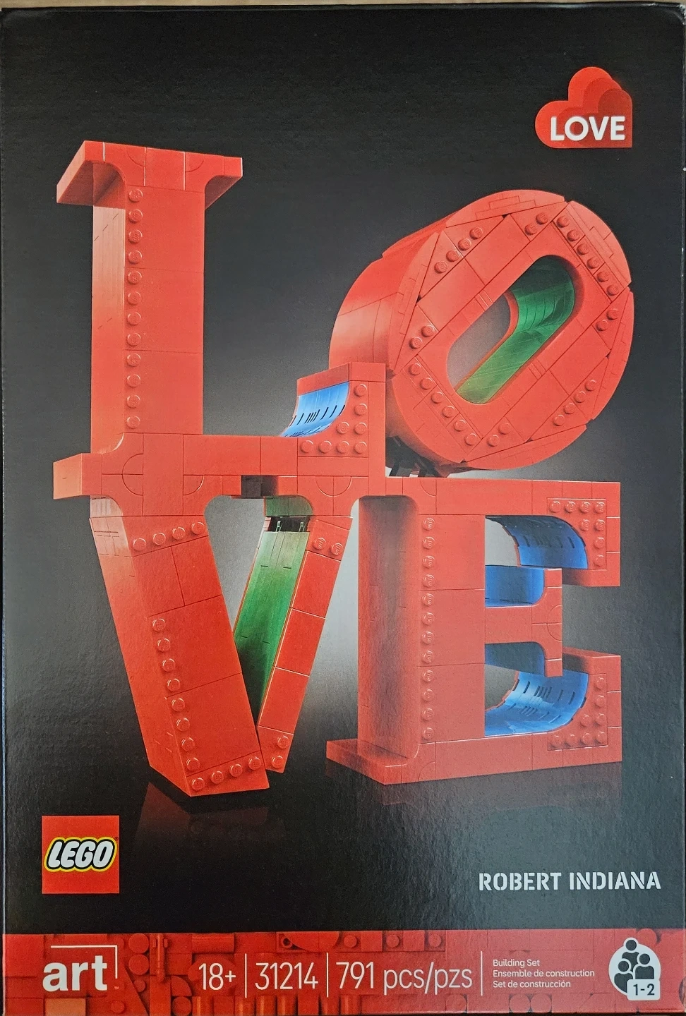Brand New LEGO Art Robert Indiana LOVE Sculpture building set. It features 791 pieces and is recommended for ages 18+. It's a fun build for art enthusiasts!