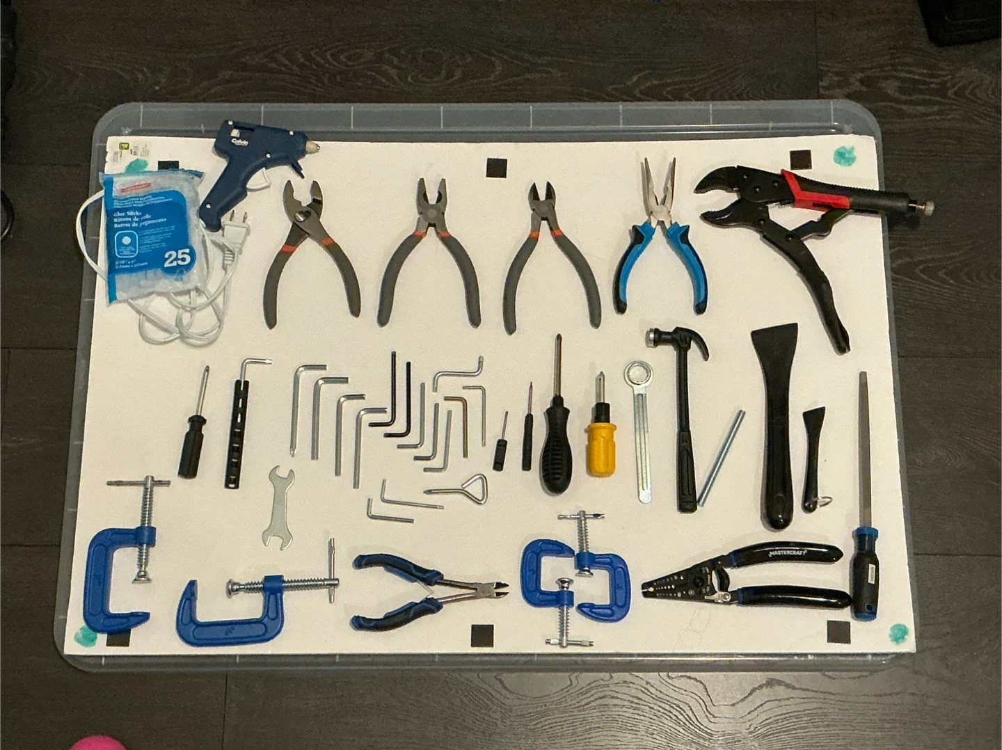 Tool Set with Pliers, Wrenches, Screwdrivers, and Clamps