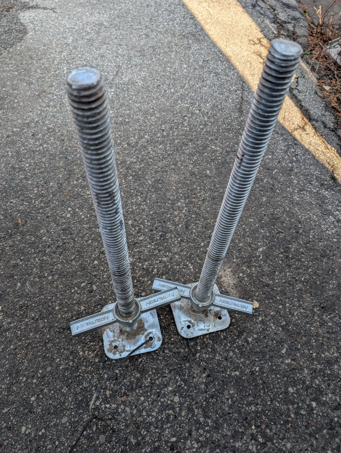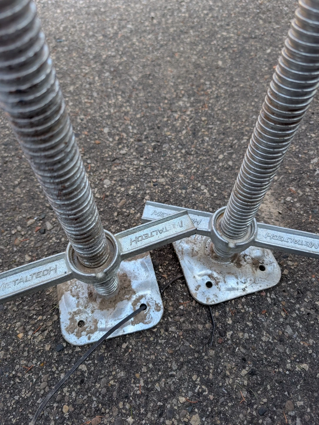 Set of two METALTECH 24" adjustable support posts. These sturdy metal jacks are designed for reliable support. They're made for strong, dependable use.