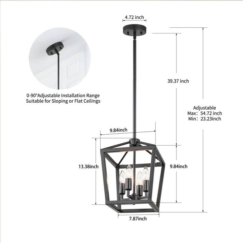 This pendant chandelier showcases a hand-finished antique brown look with wrought iron craftsmanship, blending farmhouse warmth with industrial edge. Perfect for foyers, dining rooms, and kitchen islands in rustic, country, or urban-style spaces. Designed to work with flat or sloped ceilings, this fixture offers flexible installation options to fit a variety of home layouts. It's an ideal choice for spaces with sloping ceilings or angled surfaces. This lantern-style light fixture is crafted from durable iron with clean lines and a vintage-inspired silhouette. Its industrial edge and classic charm bring rich texture and bold character to any space. Compatible with E12/Candelabra base bulbs, this modern industrial light fixture supports a range of bulb types—including LED and energy-saving options—allowing you to tailor the brightness and ambiance to suit any space. This modern industrial pendant light is a versatile choice for hallways, foyers, dining areas, bedrooms, kitchens, or living rooms. Whether used as a primary light source or for ambient accent, it adds both style and function to any space.