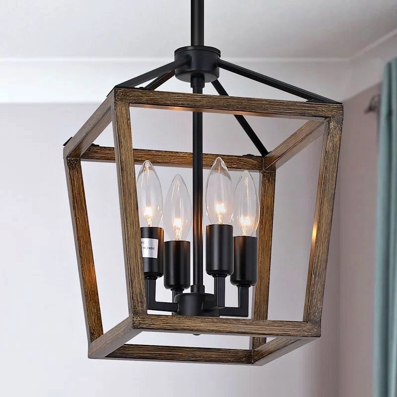 This pendant chandelier showcases a hand-finished antique brown look with wrought iron craftsmanship, blending farmhouse warmth with industrial edge. Perfect for foyers, dining rooms, and kitchen islands in rustic, country, or urban-style spaces. Designed to work with flat or sloped ceilings, this fixture offers flexible installation options to fit a variety of home layouts. It's an ideal choice for spaces with sloping ceilings or angled surfaces. This lantern-style light fixture is crafted from durable iron with clean lines and a vintage-inspired silhouette. Its industrial edge and classic charm bring rich texture and bold character to any space. Compatible with E12/Candelabra base bulbs, this modern industrial light fixture supports a range of bulb types—including LED and energy-saving options—allowing you to tailor the brightness and ambiance to suit any space. This modern industrial pendant light is a versatile choice for hallways, foyers, dining areas, bedrooms, kitchens, or living rooms. Whether used as a primary light source or for ambient accent, it adds both style and function to any space.