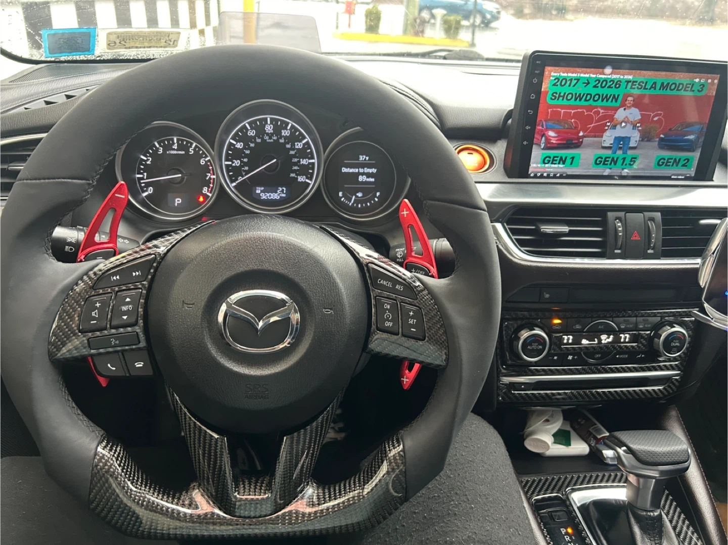 Black Mazda 6 sedan 92xxxmiles.(all highway miles from Long Island to Staten Island) Features a sleek exterior design and a comfortable interior. Includes paddle shifters for a sporty driving experience. This car offers a smooth ride and responsive handling.