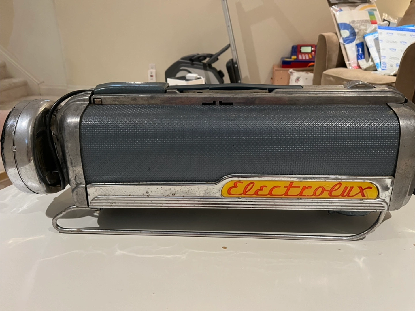 Selling a vintage Electrolux LX vacuum cleaner. It's in used condition, as you can see in the photos. The model LX has a serial number of 80001186. It operates at 115 volts AC-DC and 5.0 amps. Missing hose and handle is broken. Not sure if it still works.