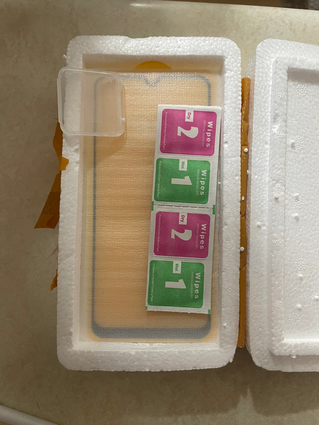 Selling a new screen protector and phone case for a Samsung Galaxy A10. The screen protector comes with wet and dry wipes for easy application. The phone case is a stylish red and black gradient colour.