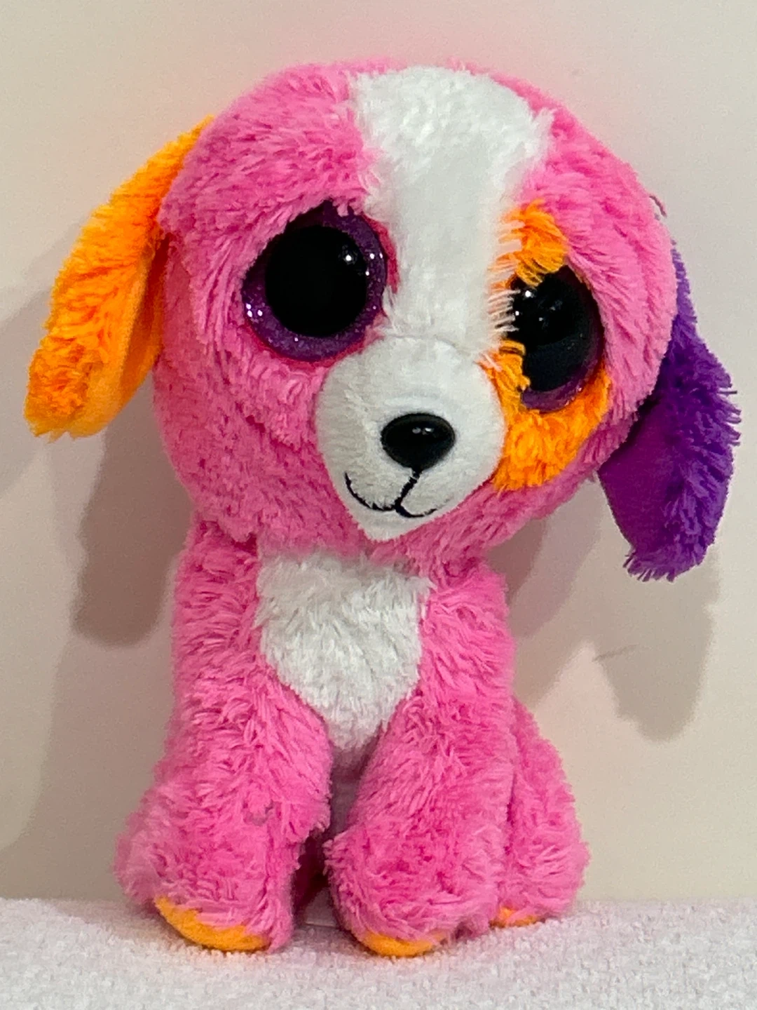 This is a super cute pink dog plush from Ty Beanie Boos! 6”. It has big, sparkly eyes and is in great condition. Perfect for any Beanie Boo collector or anyone who loves cute plushies