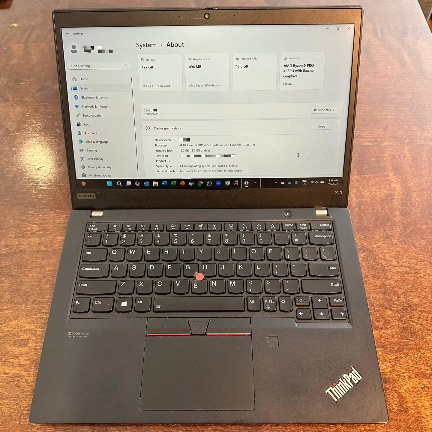 Lenovo ThinkPad X13 AMD, 512GB SSD, 16GB RAM, Windows 11