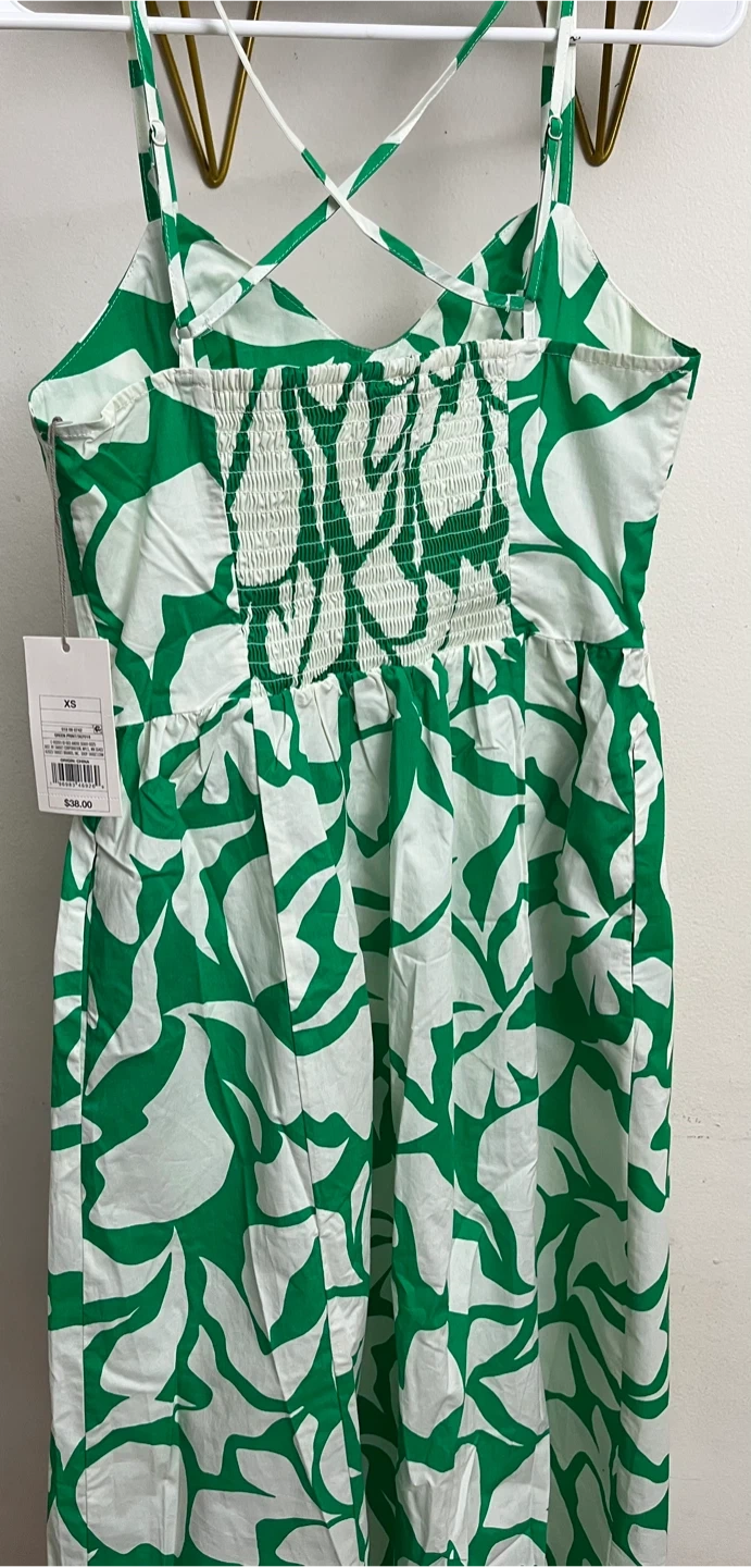 Women's Green & White Floral Print Maxi Dress - Size XS