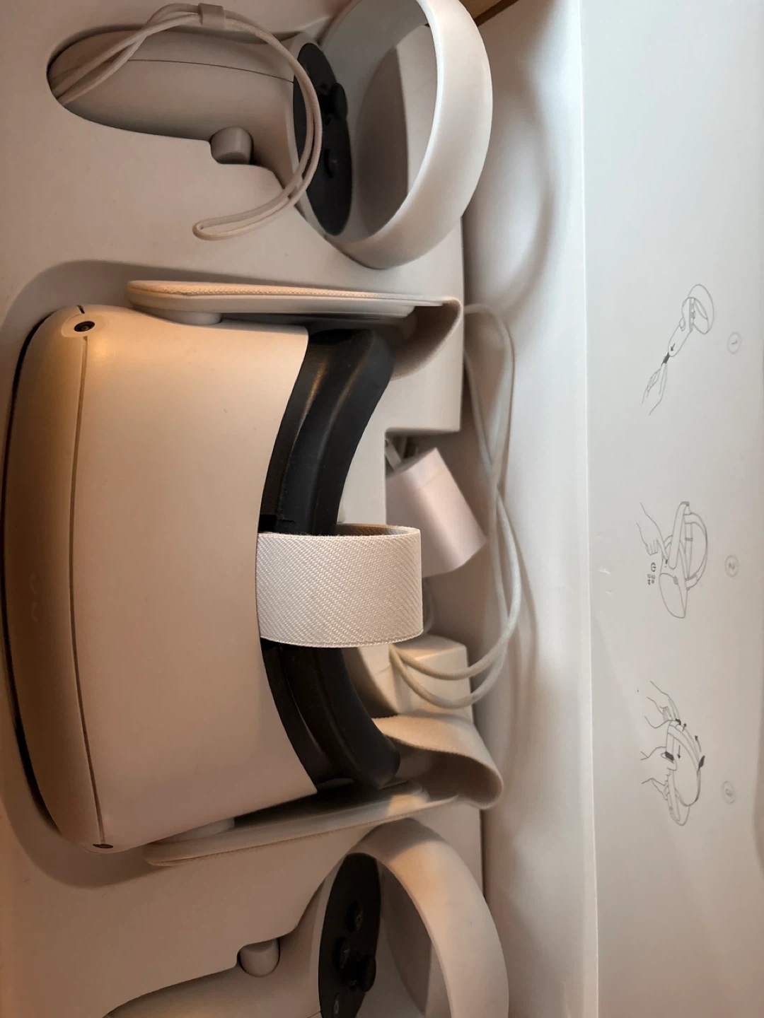 Meta Quest 2 virtual reality headset. It comes with two controllers and charging cable. Experience immersive gaming and virtual worlds!