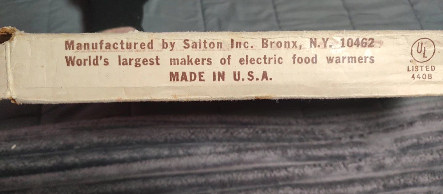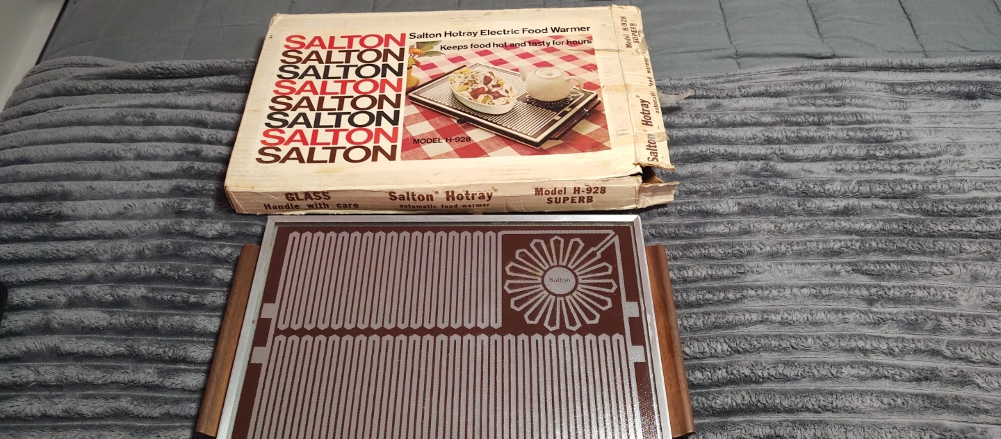 Selling a vintage Salton Hotray electric food warmer, model H-928. It comes with the original box. This hot tray is perfect for keeping food hot and tasty for hours. It was made here in the Bronx!!