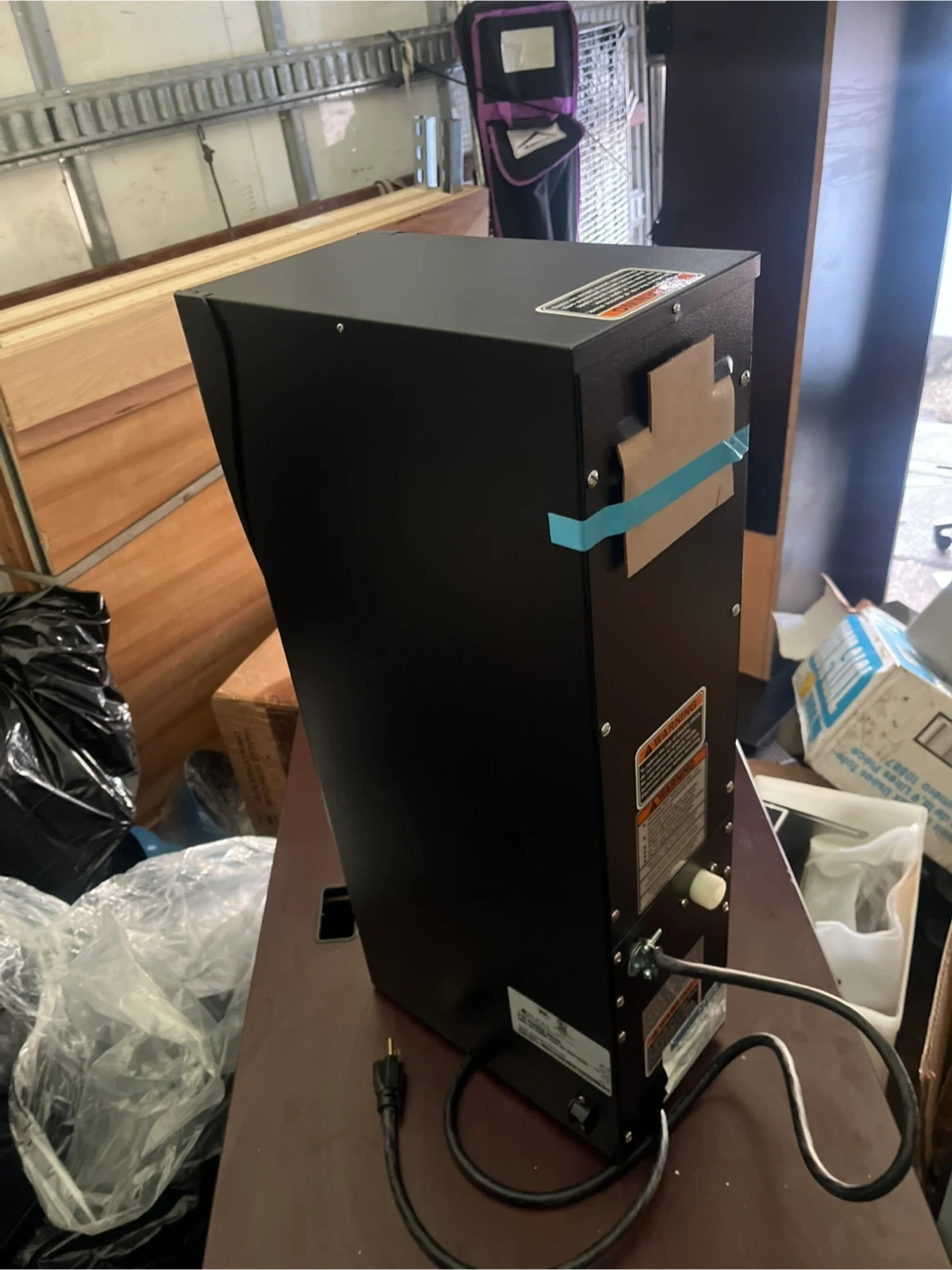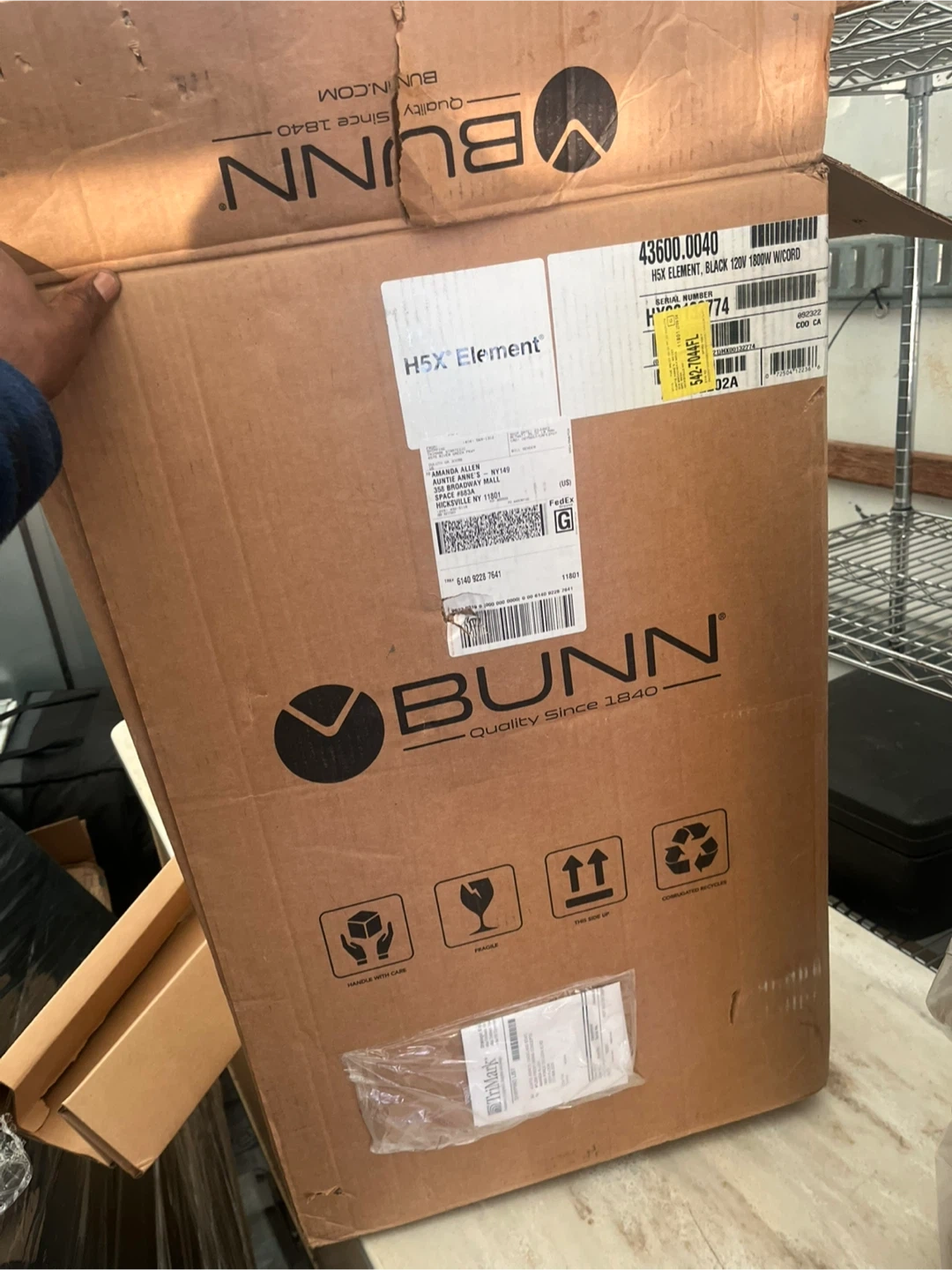 This is a BUNN H5X Element water dispenser in black. It has a built-in faucet for easy dispensing. It's designed for countertop use. Ready for your kitchen or office!