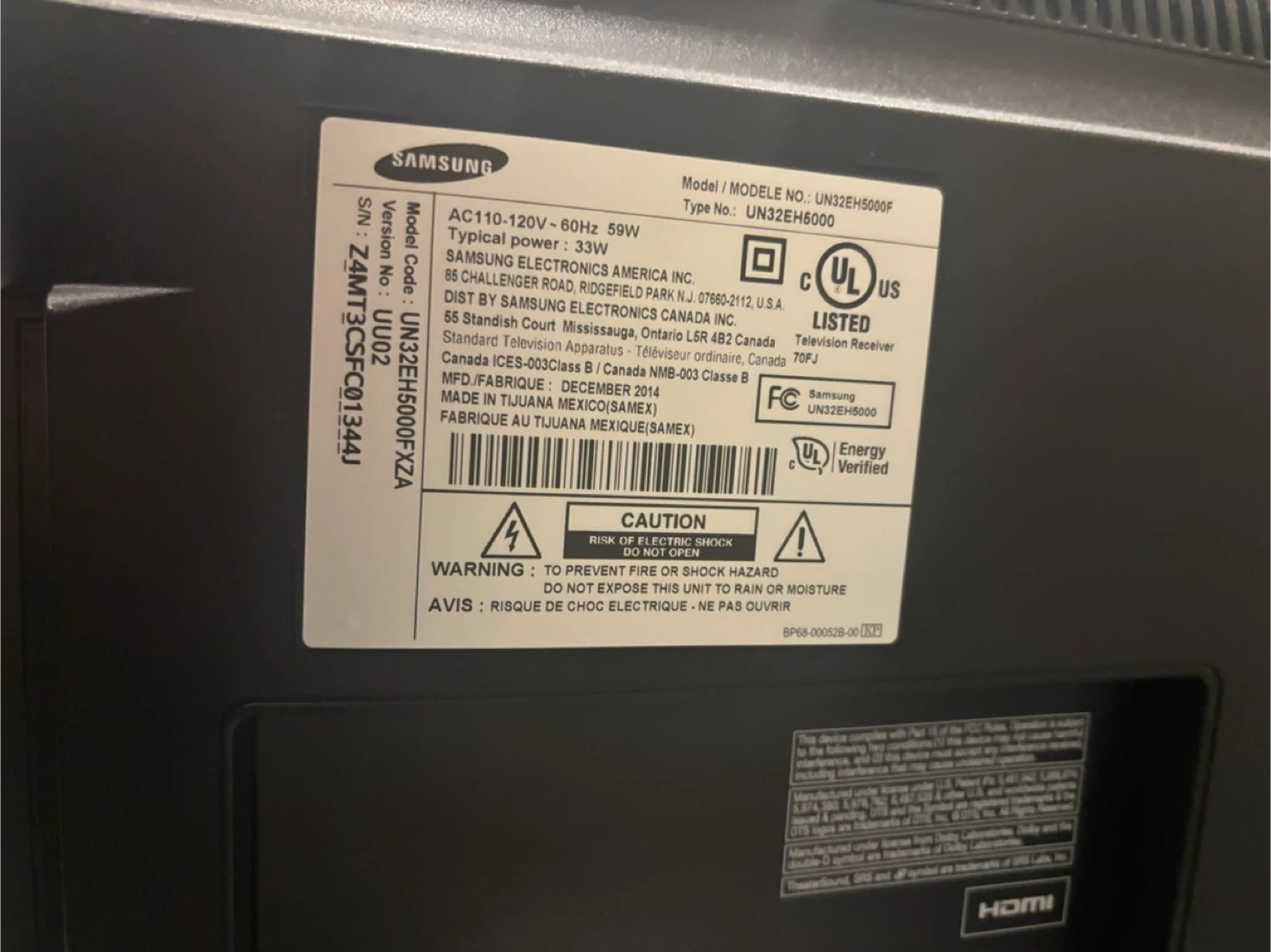 Samsung 32-inch LED TV (Model UN32EH5000F).