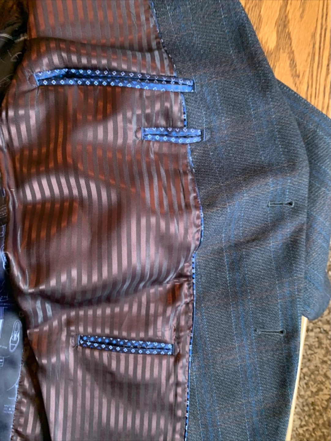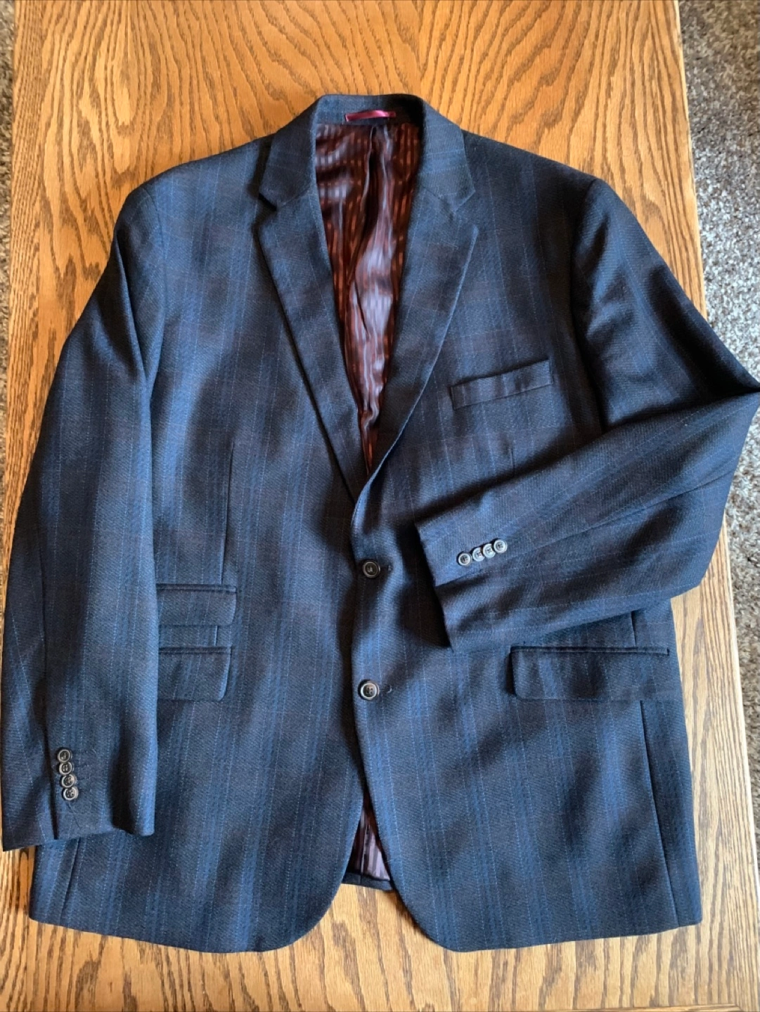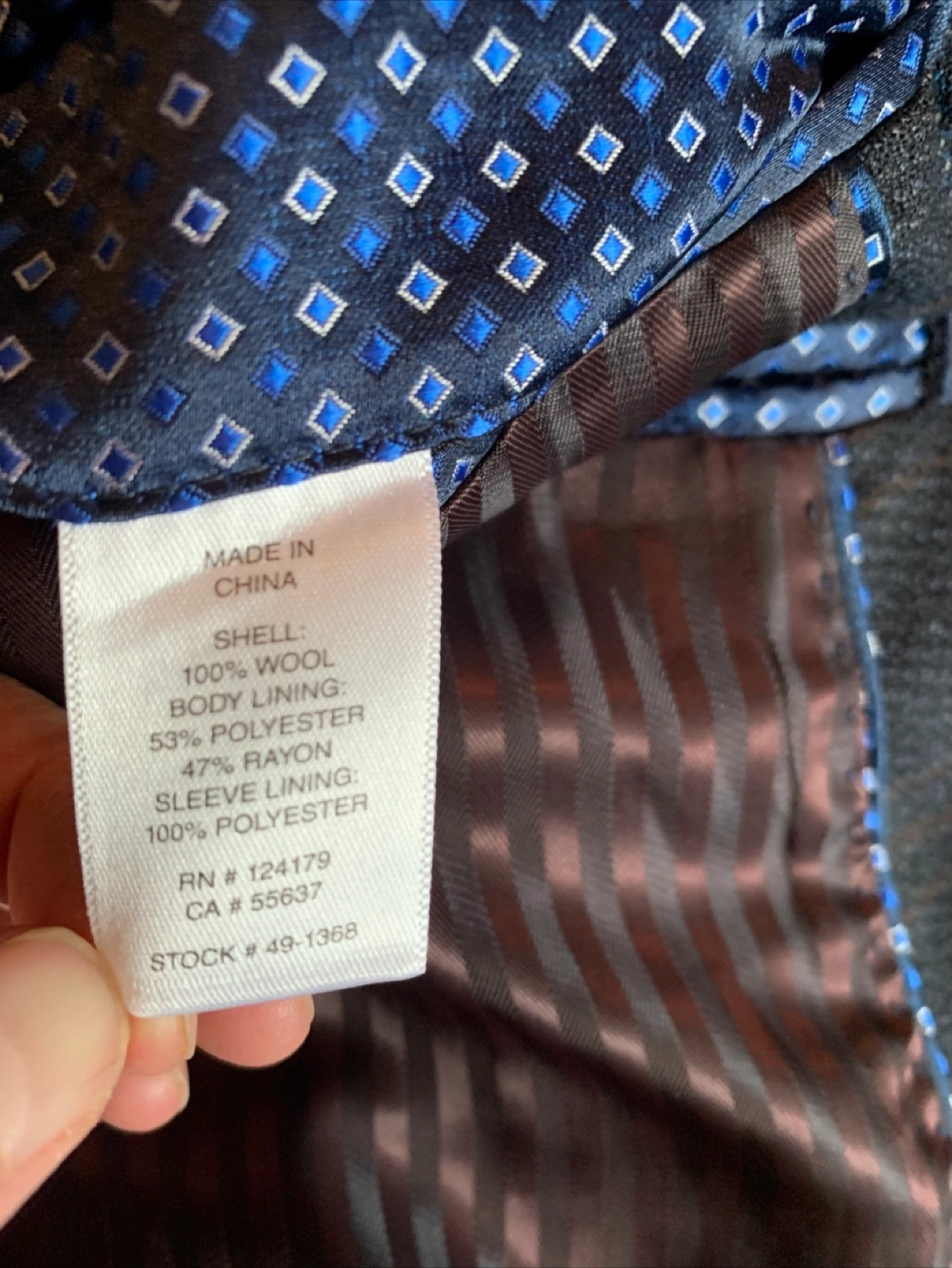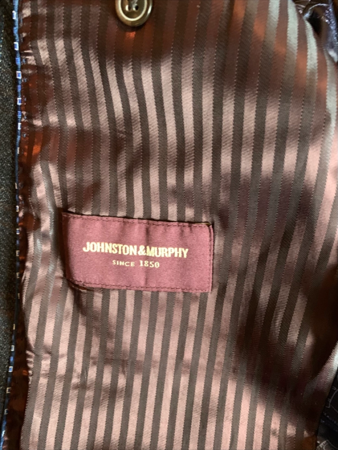 Selling a Johnston & Murphy blazer, perfect for a stylish look. The shell is 100% wool, with a body lining of 53% polyester and 47% rayon. The sleeve lining is 100% polyester.