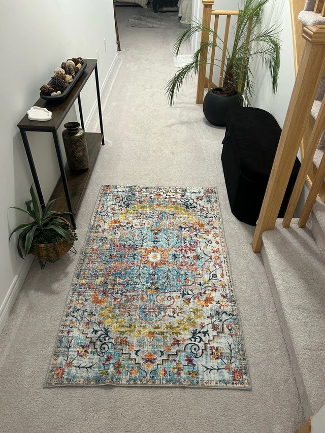 Add a touch of elegance to your floors with this vibrant area rug, showcasing a beautiful blend of colours and intricate patterns that will brighten up any room. This rug is in new condition and ready to enhance your home decor. Additional details include: