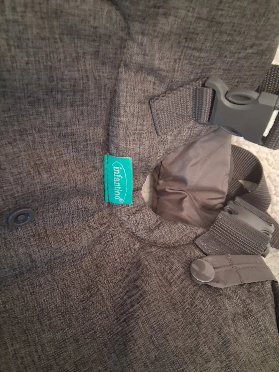 I'm selling an Infantino baby carrier in great condition! It's a comfortable and convenient way to carry your little one. The carrier is designed to support babies from 8-32lbs. It has multiple carrying positions to suit your needs as your baby grows. It's a versatile and practical choice for parents on the go!