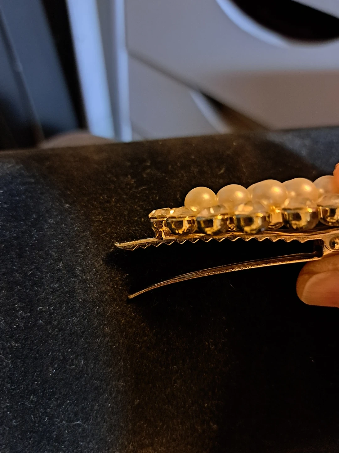 Gold tone pearl and rhinestone hair clip