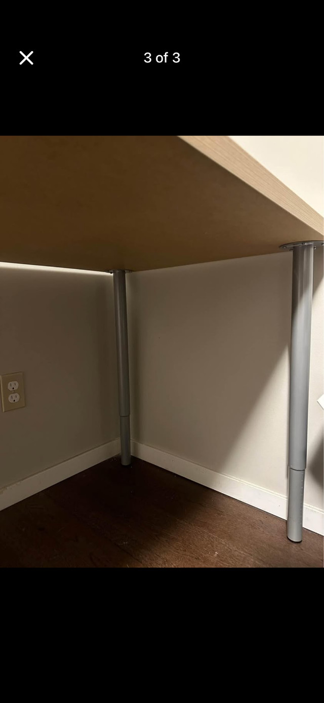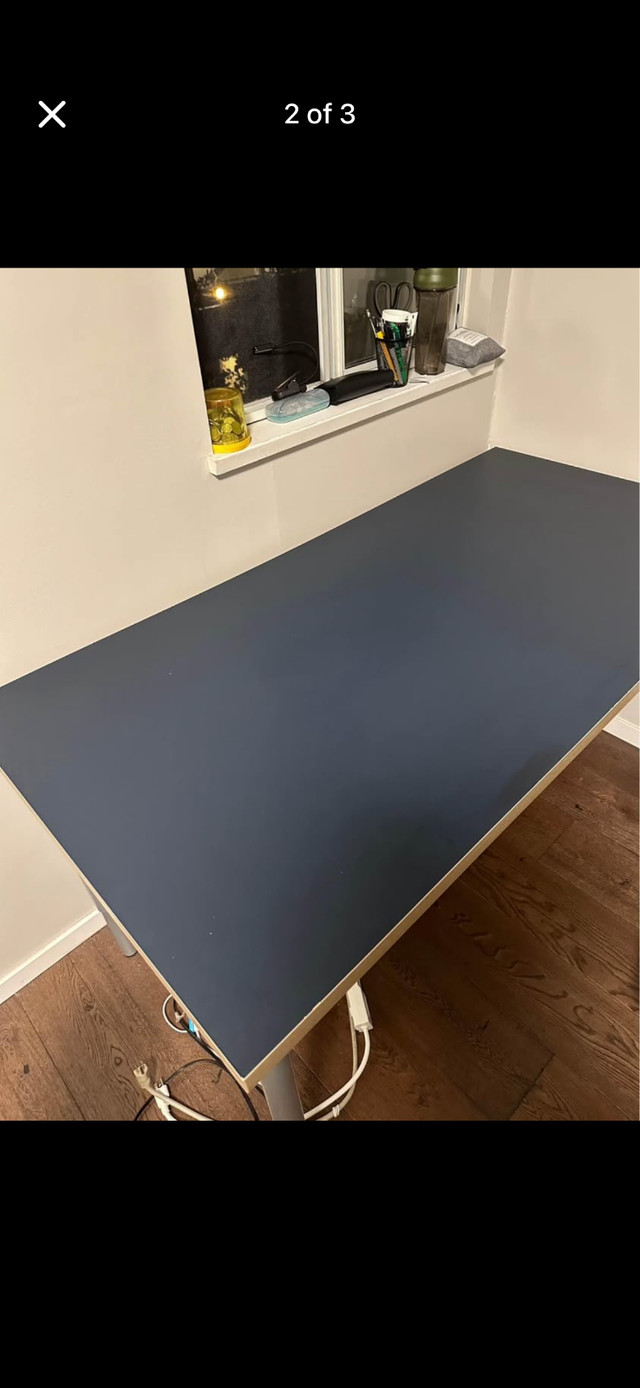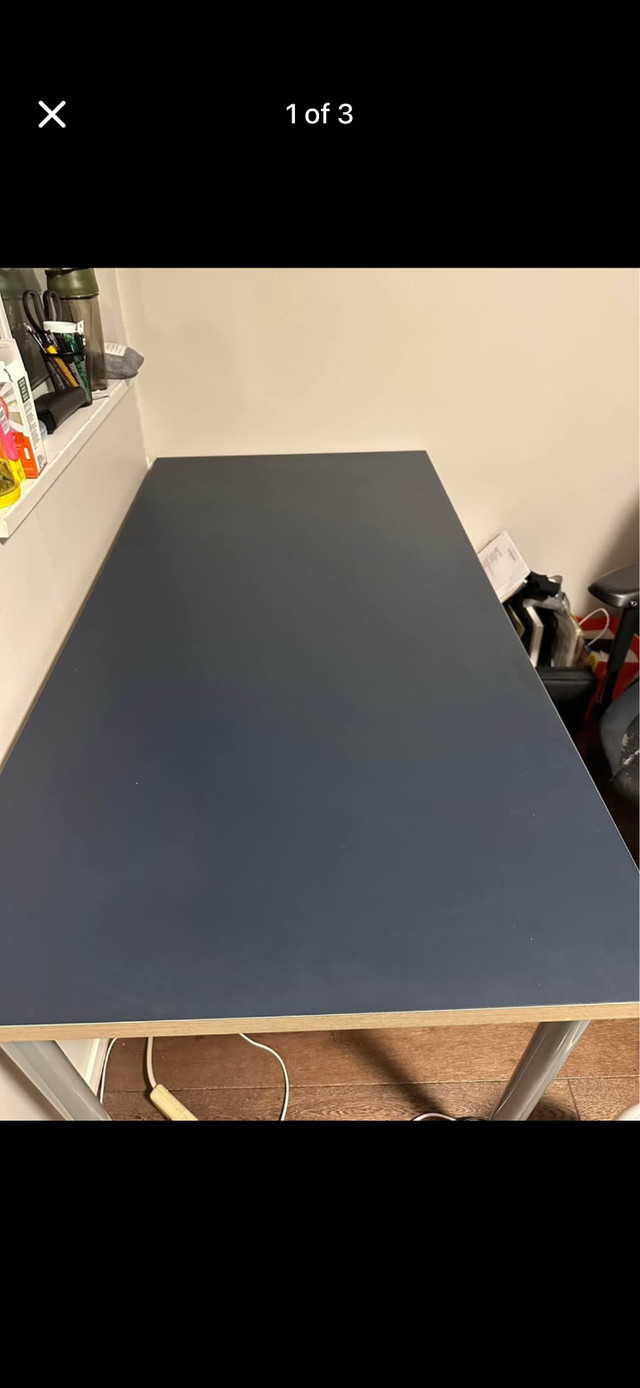 160cm x 80cm (63x31.5”) table with adjustable legs. No scratches or dents. Original price was 180 for the top, 60 for the legs (15 each). Pick up only.
