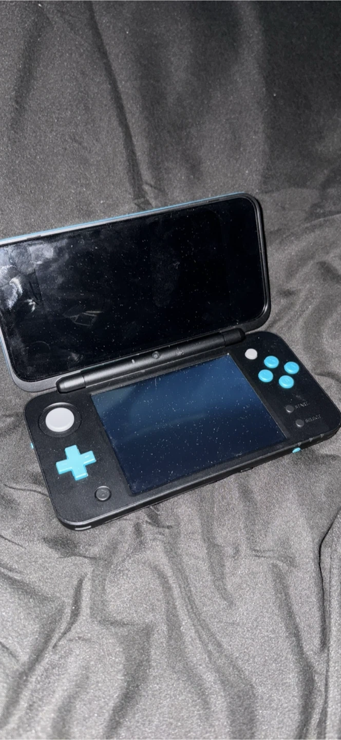 Selling a Nintendo 2DS XL in turquoise and black. It's in good condition with homebrew on it.