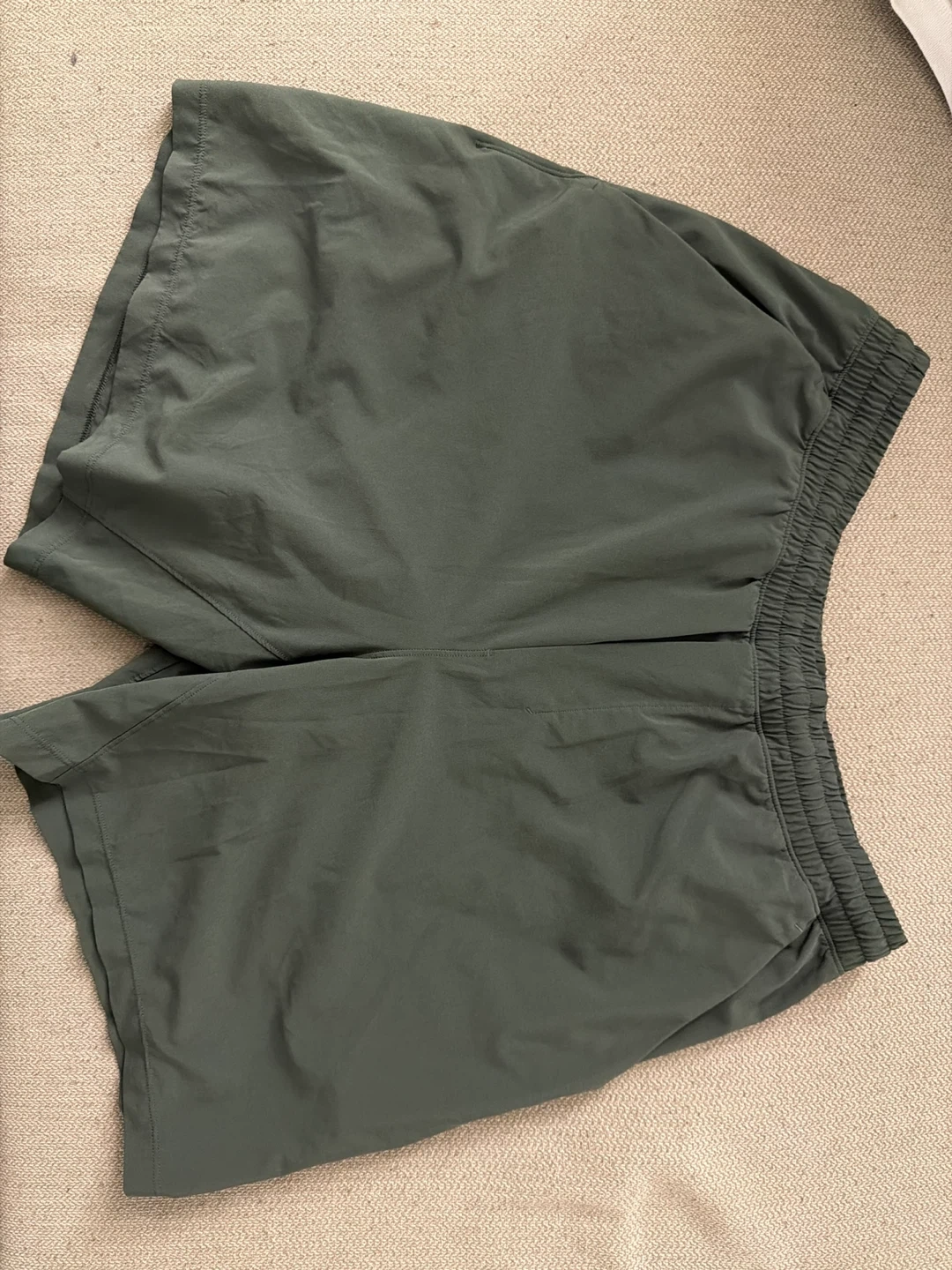 Color Sage green. Bought back in 2021, good condition. Note they are LINED. Cannot remember the exact color name but it resembles a sage green color