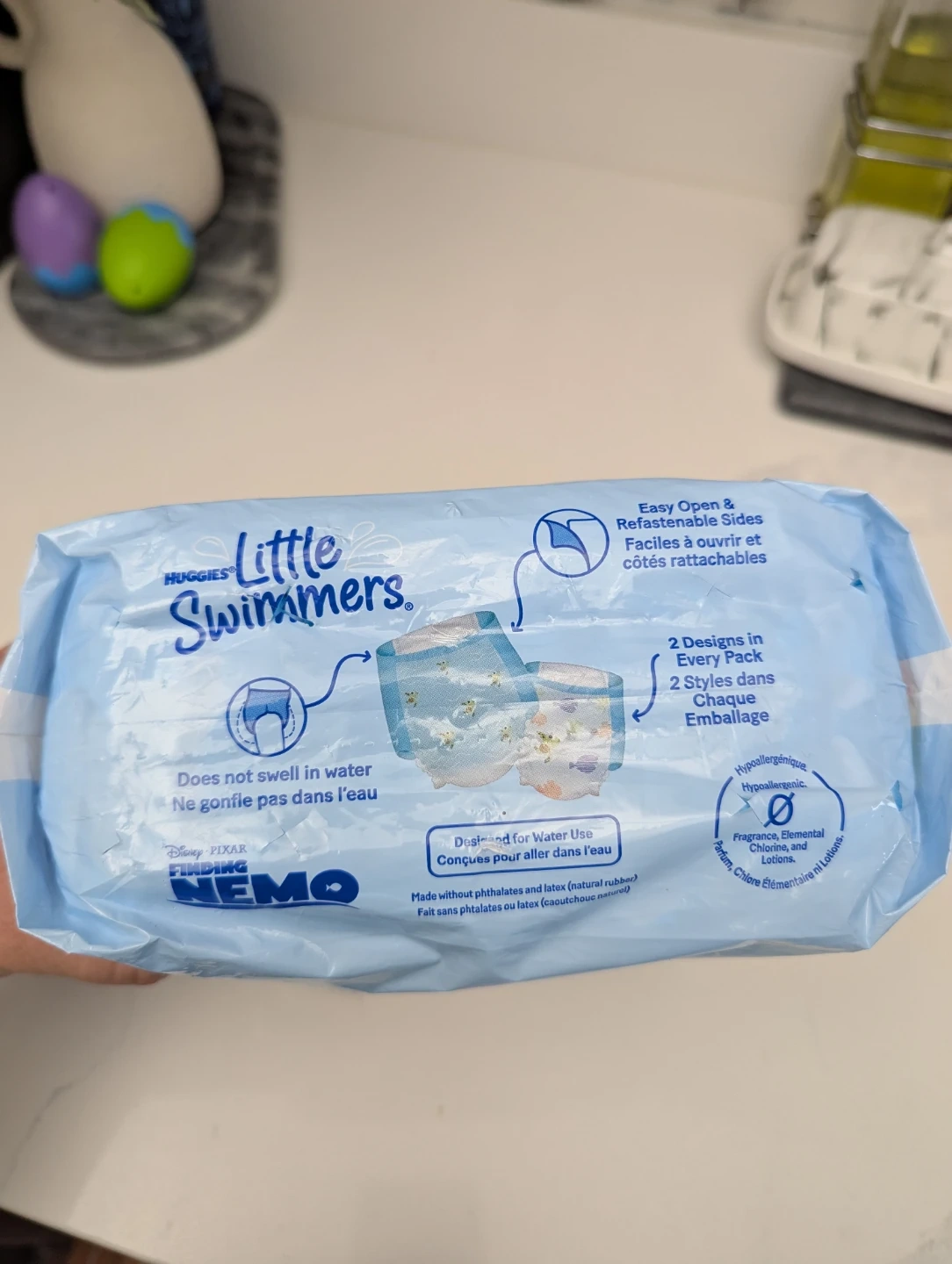 These Huggies Little Swimmers are designed for water use and won't swell. They're hypoallergenic, fragrance-free, and come in Finding Nemo designs. Made without phthalates and latex for comfort.