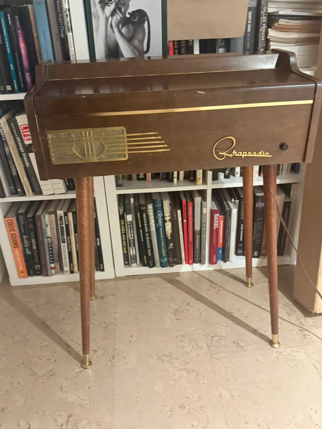 Selling a vintage Rhapsodic chord organ. It's a unique piece with a retro look. Perfect for someone interested in vintage instruments or unique musical pieces