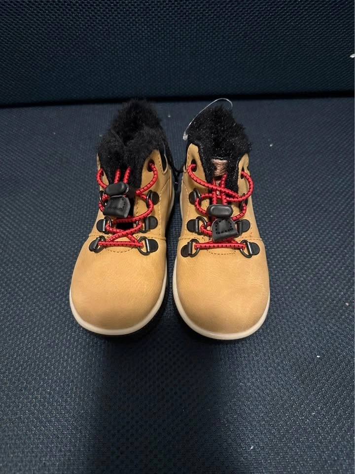 Brand new toddler winter boots, size EU 22 (fits approx. 18–24 months). Warm faux-fur lining and non-slip sole, perfect for winter and fall! Stylish tan color with red lace detail. Never worn, excellent condition. Pickup in Aurora.