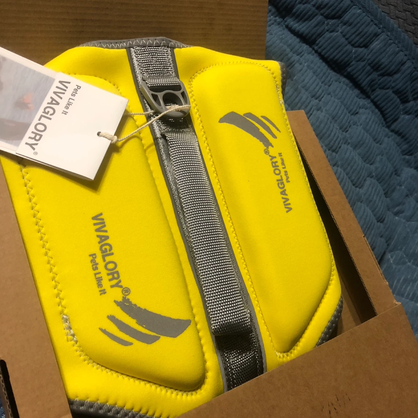 Selling a new VIVAGLORY pet life jacket vest in bright yellow. Features adjustable straps and buckles for a secure fit. Size is small.