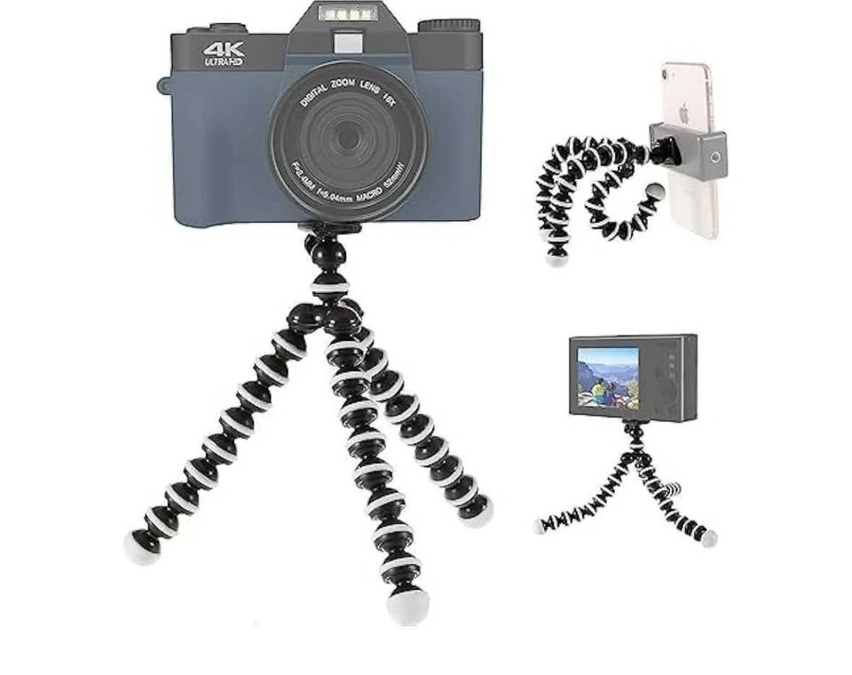 Octopus Flexible Tripod Camera with 1/4" Screw, Quick Release Plate for Digital Cameras, SLR, DSLR, Travel Photography, Vlogging, Live Streaming.