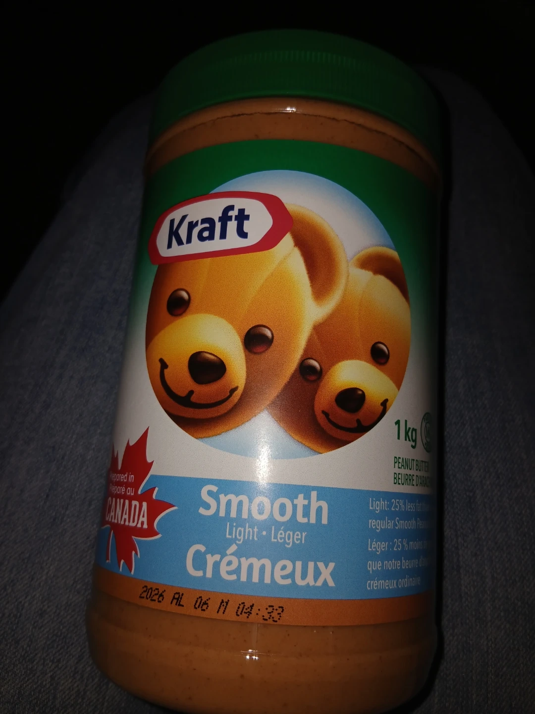Kraft smooth peanut butter, 1kg size. This is a light version with 25% less fat than regular smooth peanut butter. Best before 2026 April 06. *Unopened