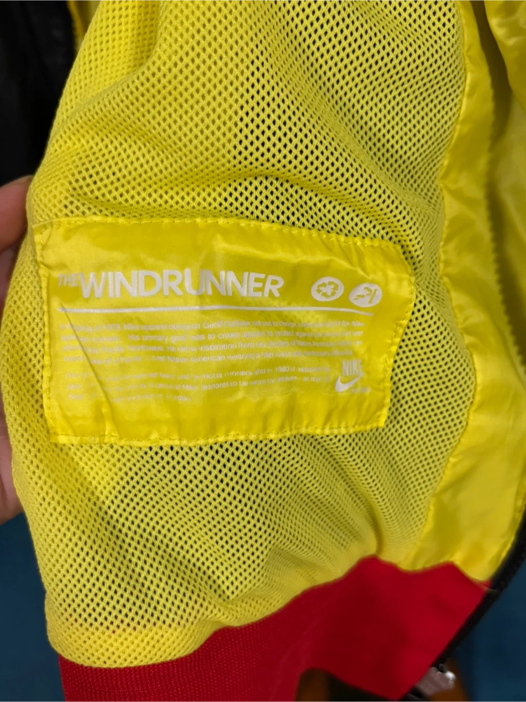 Selling a Nike Windrunner jacket in a vibrant yellow, black, and red colourway! It's a size medium and in great shape. The jacket features the iconic Windrunner design and is perfect for light weather conditions. A stylish and functional piece for your wardrobe!