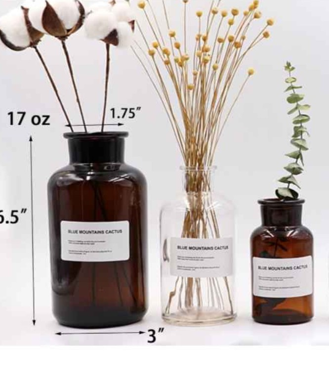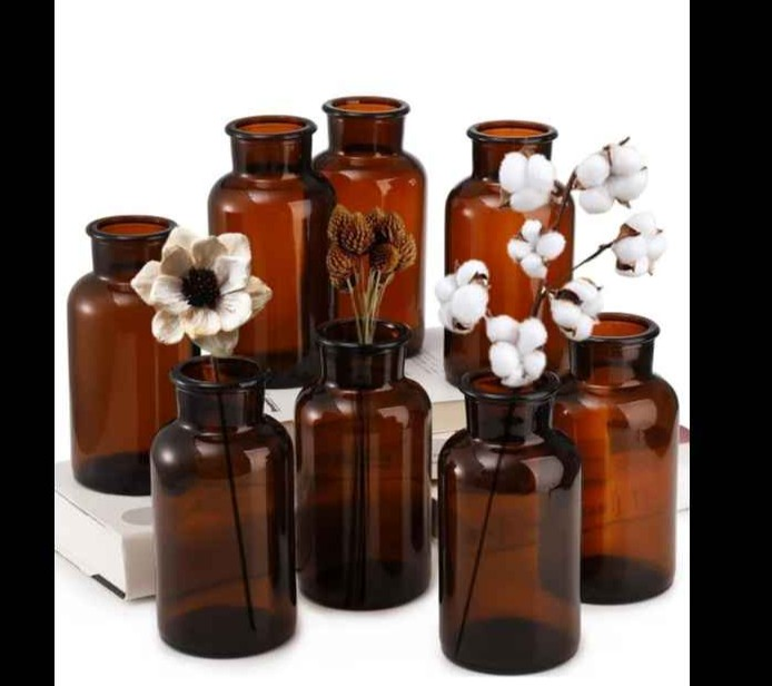 Selling a set of glass vases from Blue Mountains Cactus! These vases are perfect for adding a touch of rustic charm to your home decor. They come in various sizes, as shown in the pictures. The amber color is beautiful and will complement any floral arrangement or dried botanicals you choose to display