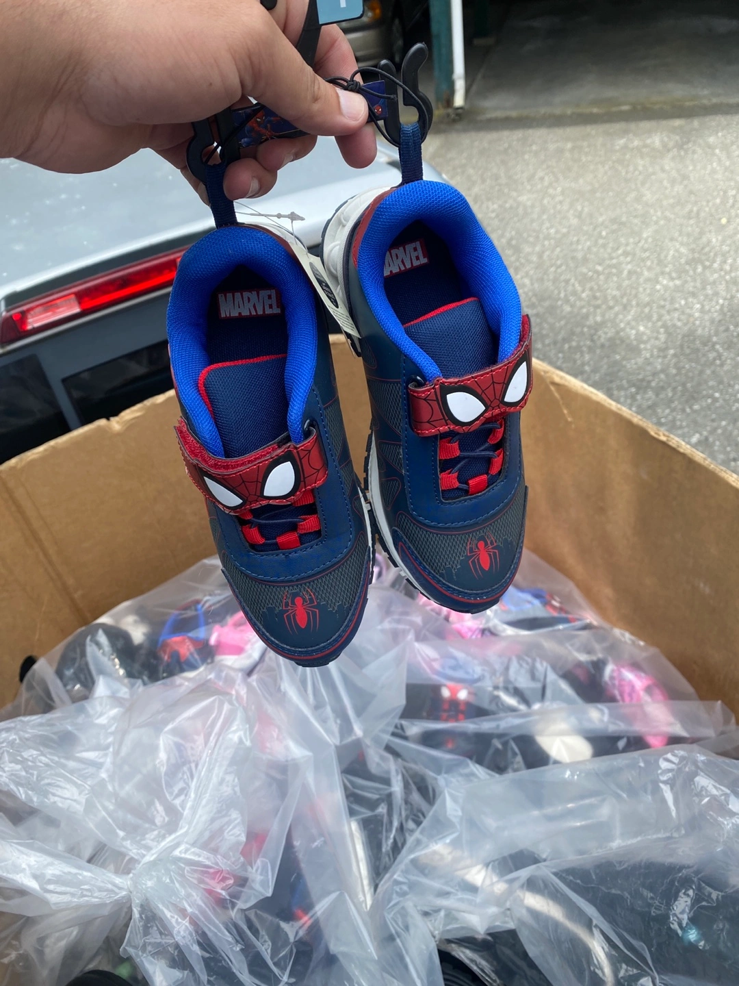 Kids marvel spider man shoes. These sneakers feature a blue and red colour scheme. The design includes a spider web pattern and Spider-Man face details. A great purchase for kids that need a fun and fashionable shoe. Please check the pictures for size reference.