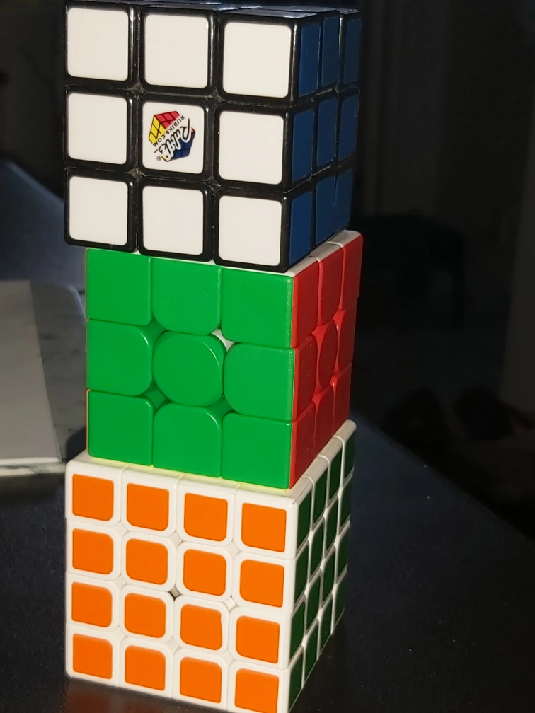Selling a collection of Rubik's cubes! There's a classic 3x3, a 4x4, and another 3x3 with a different design. Great for anyone who enjoys puzzles!