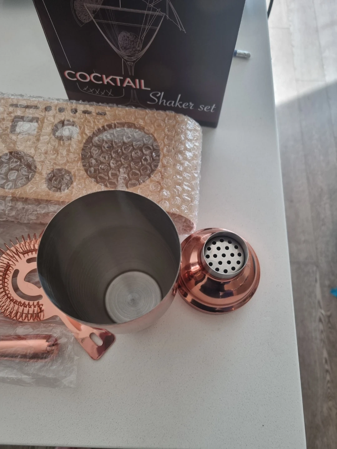 Sishynio Copper Cocktail Shaker Set with Stand