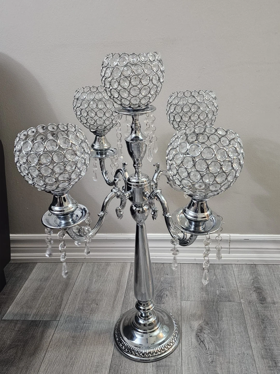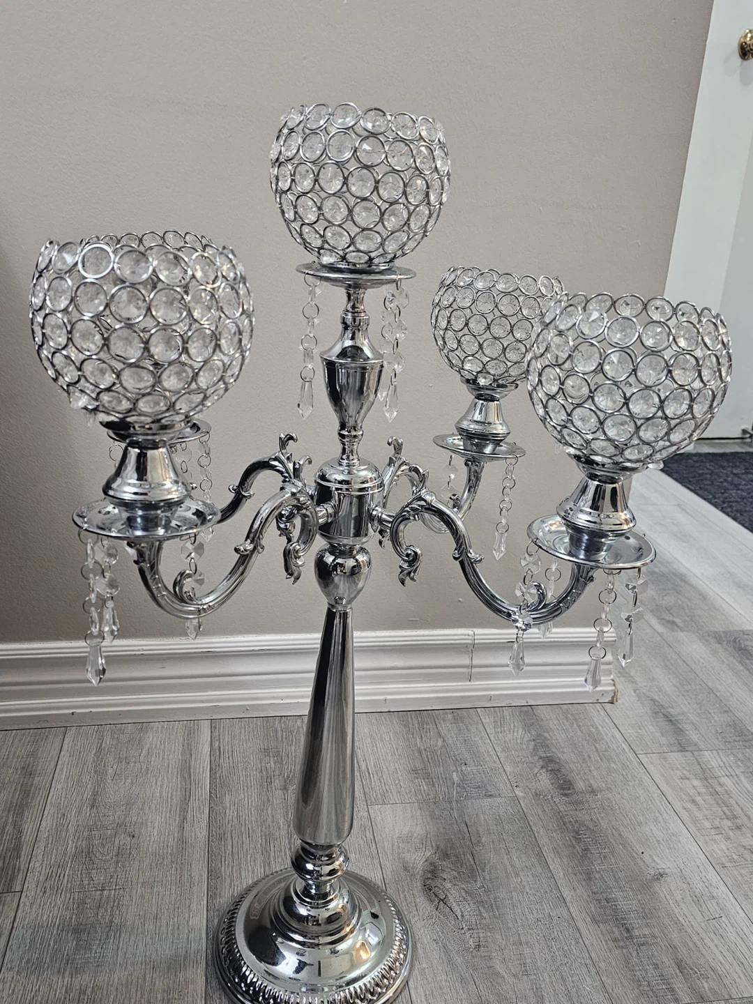 Silver Crystal Candelabra Centerpiece