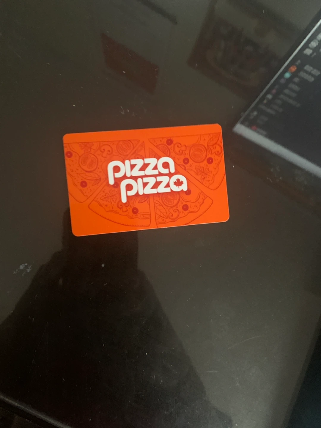 Pizza Pizza gift card. Use it for any Pizza Pizza purchase. It's a great way to treat yourself or someone else! I accept trades or cash!