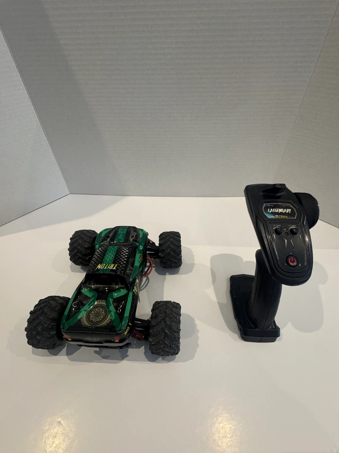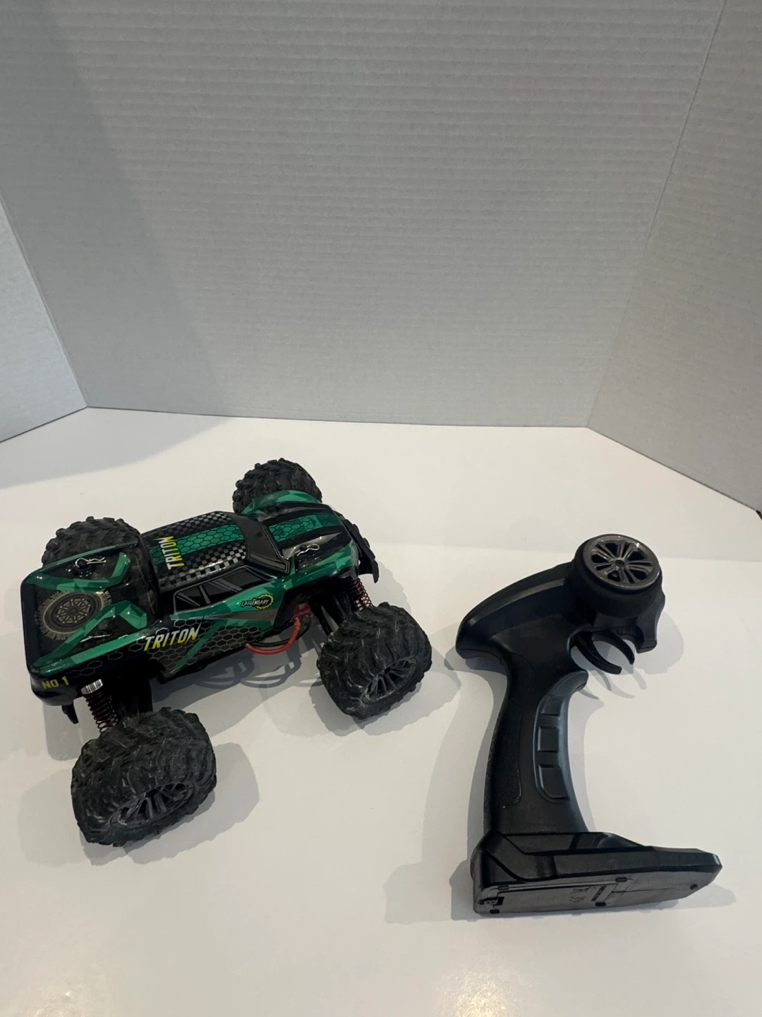 This is a TRITON RC monster truck. It's a fun remote-controlled vehicle for outdoor play. Comes with a remote control. Water proof and 4x4 off road. 30 Kmh plus
