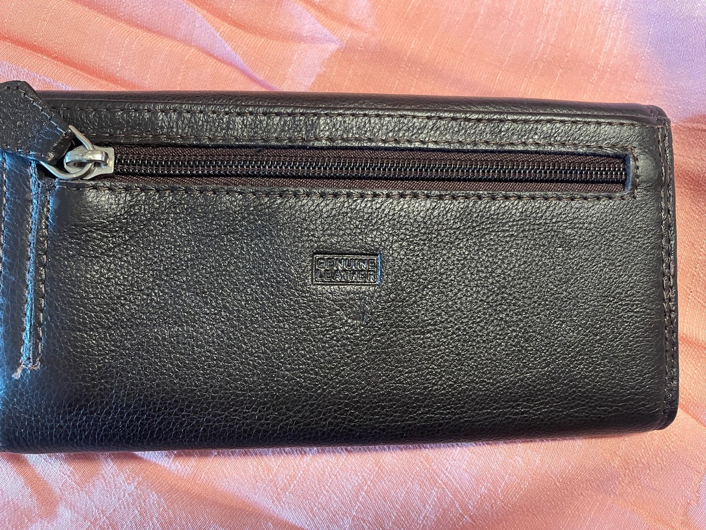 Brand new brown genuine leather wallet with a zippered coin . It has numerous card slots and a large billfold section. made in Canada.