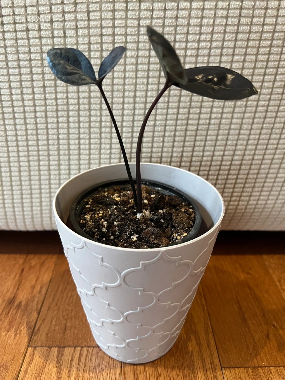 Two mini trees w a pair of leaves Black ZZ Plant aka Money Tree