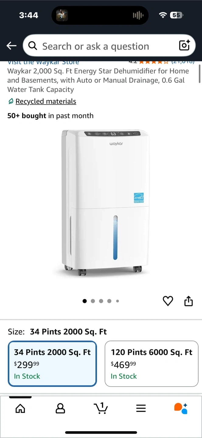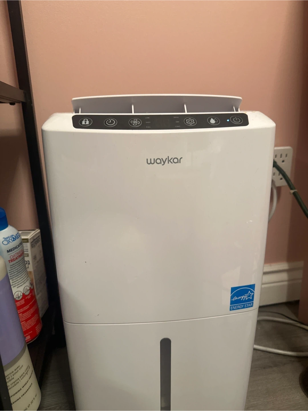 If you pick up today I’ll do $150 This Waykar dehumidifier covers up to 2000 sq. ft. It has a 34-pint capacity and is Energy Star certified. Features auto or manual drainage and a 0.6-gallon water tank. Wheels included for easy mobility.