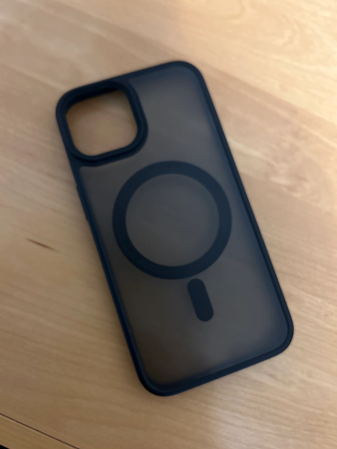 Pre-owned iPhone 14 in white. Includes a black phone case with MagSafe compatibility. Excellent condition.