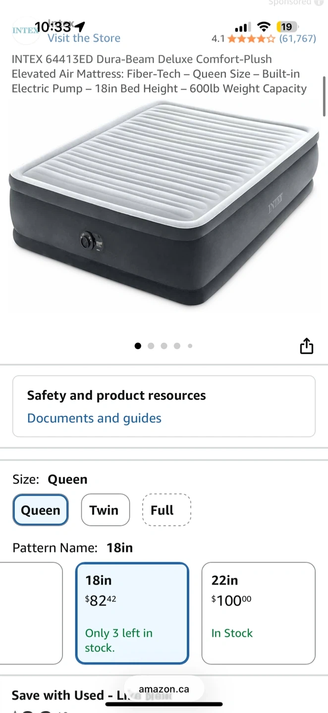 This is an Intex inflatable air mattress. It's dark grey with a white top. Great for camping trips or extra guests.