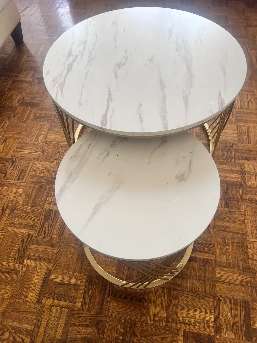 Set of 2 Round Nesting Coffee Tables - White Marble Look