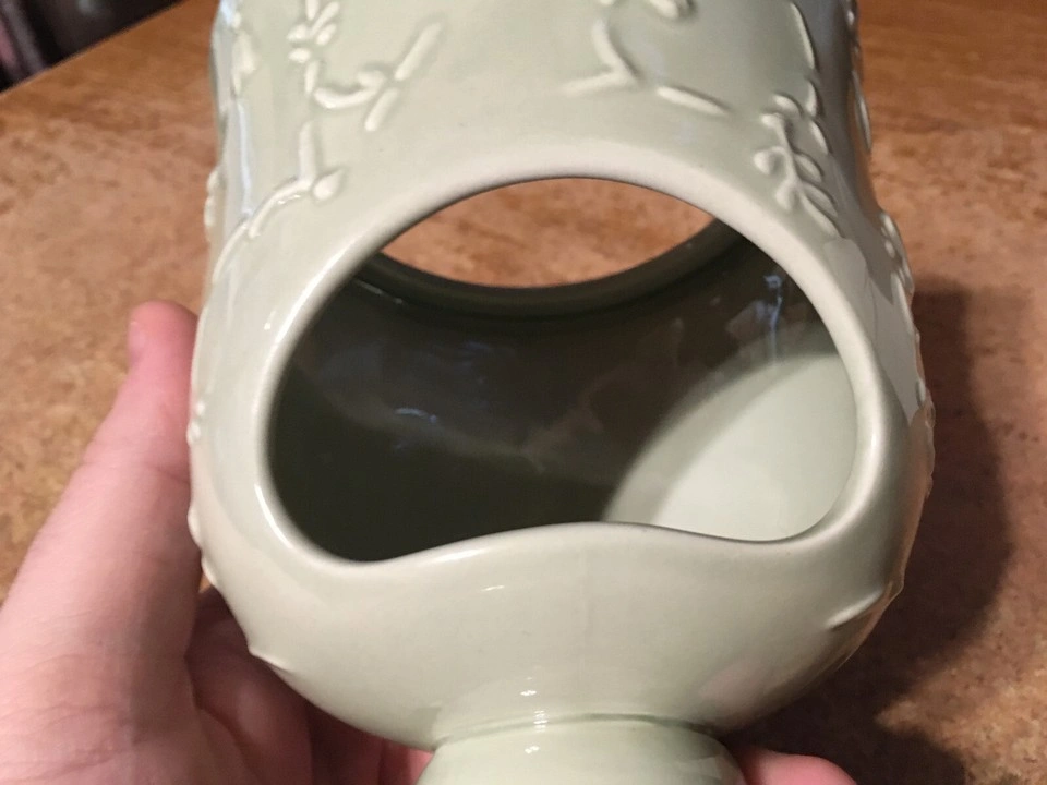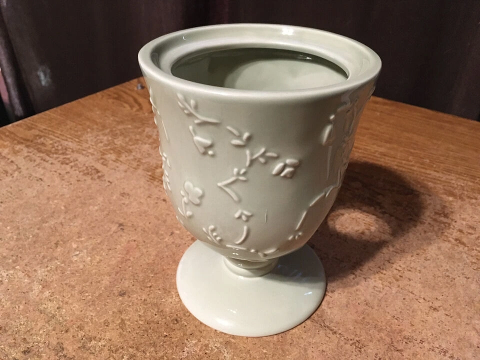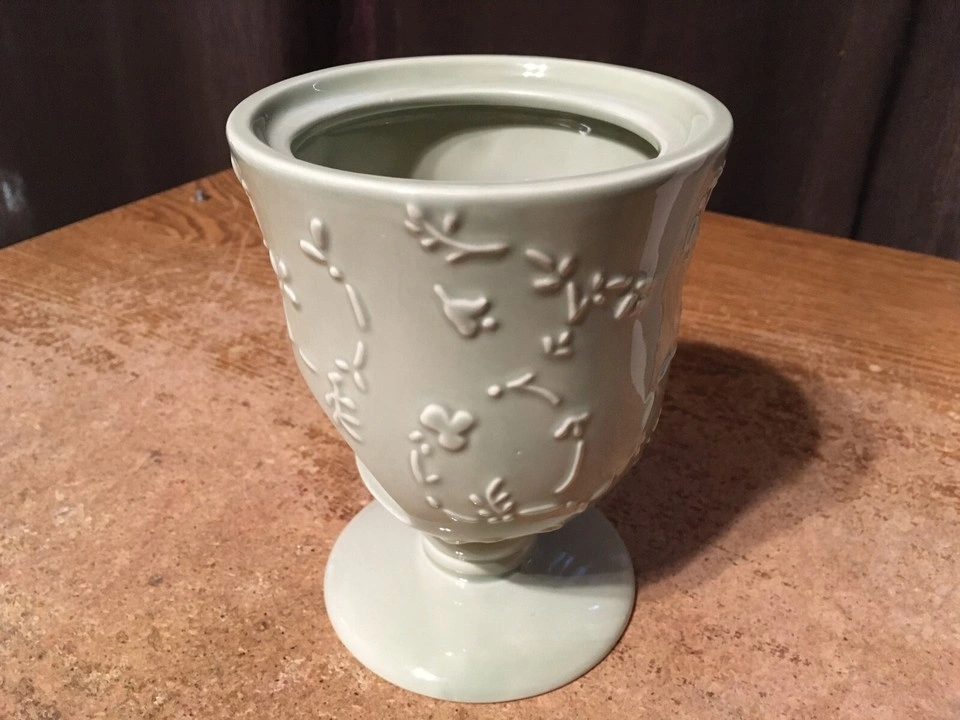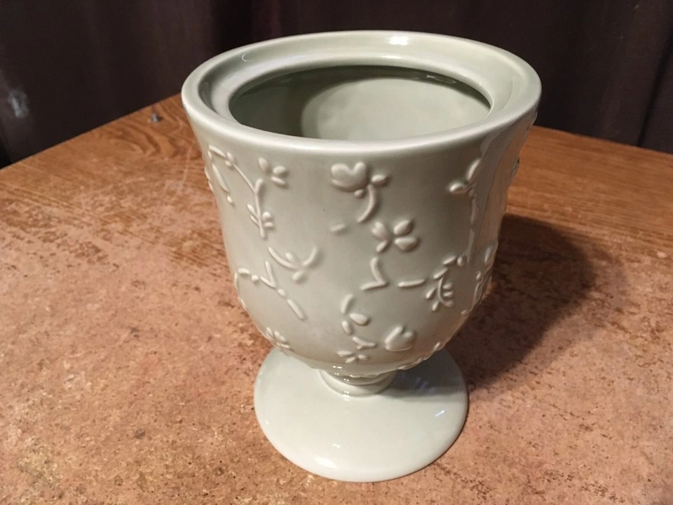greenish candle holder from Hallmark with a flower designs on it very good condition pick up at house