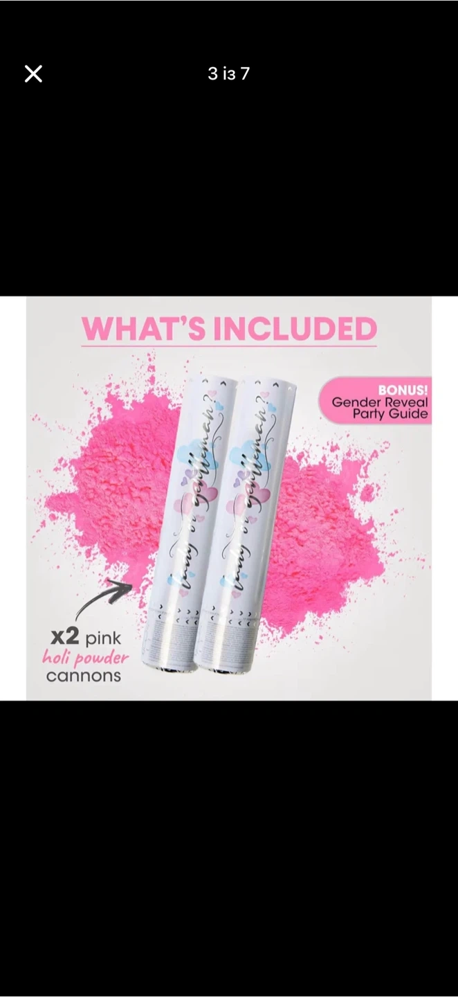 Two pink Holi powder cannons are included for your gender reveal celebration. They're 100% biodegradable and easy to wash off. This set is perfect for surprising guests during a gender reveal party!